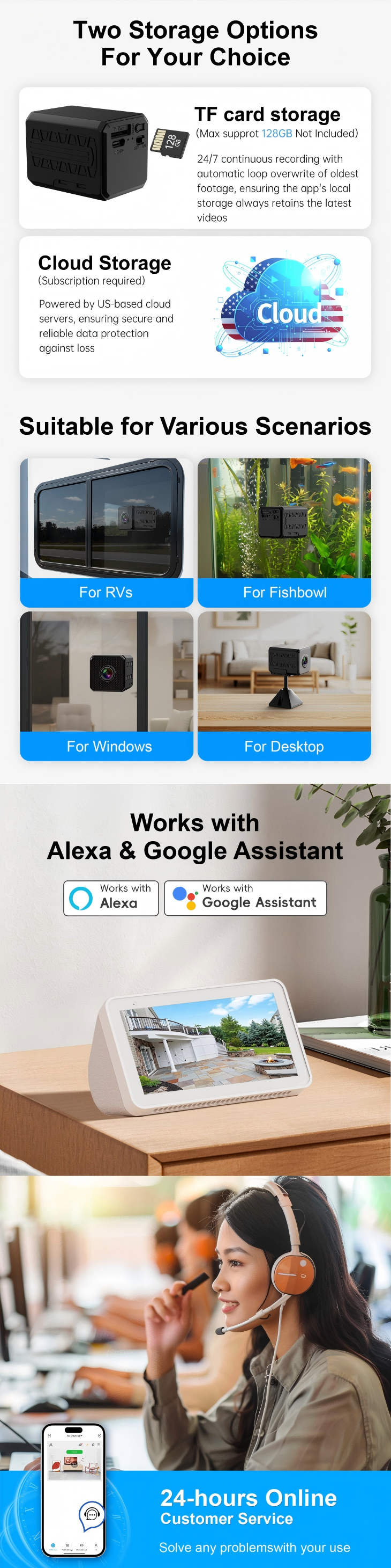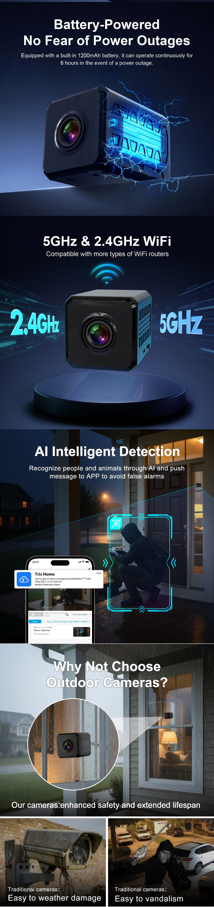 Accurately identifies humans/animals via AI, pushes alerts to the APP when motion is detected, and reduces false alarms effectively.