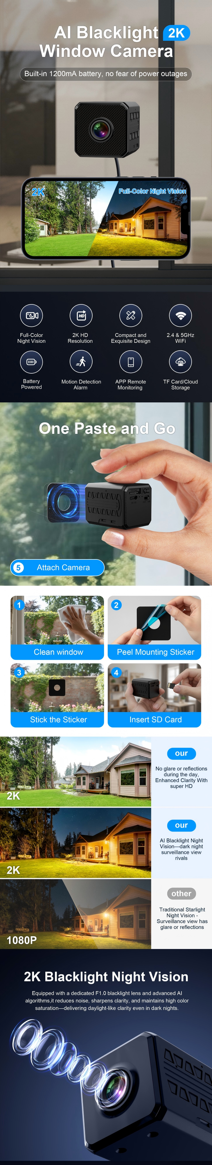 Equipped with a dedicated F1.0 blacklight lens and advanced algorithms, it reduces noise and maintains high color saturation, delivering daylight-like clarity at night with no glare/reflections.