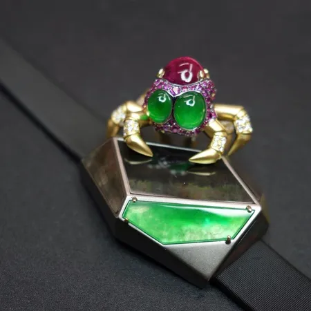 The positioning of the spider's legs and the effect of the mother-of-pearl showing rocky textures are worth pondering in the work.