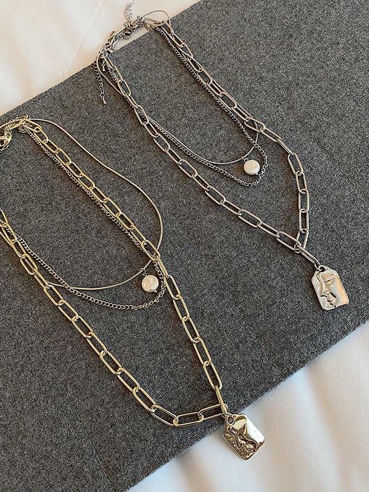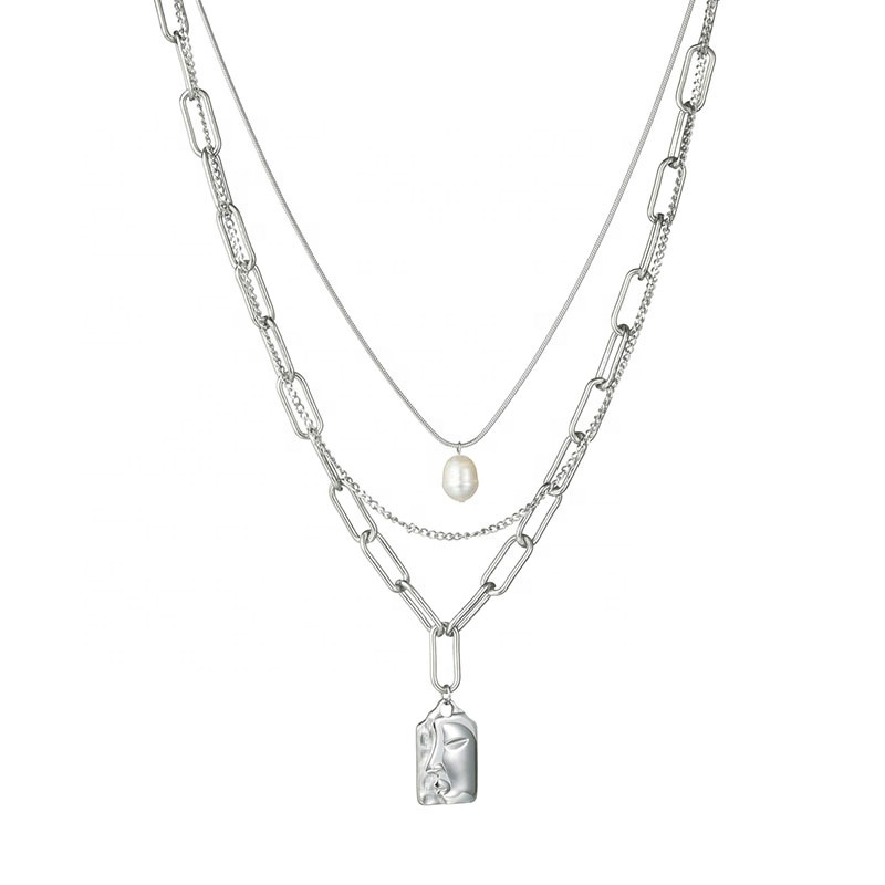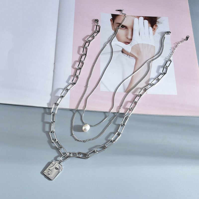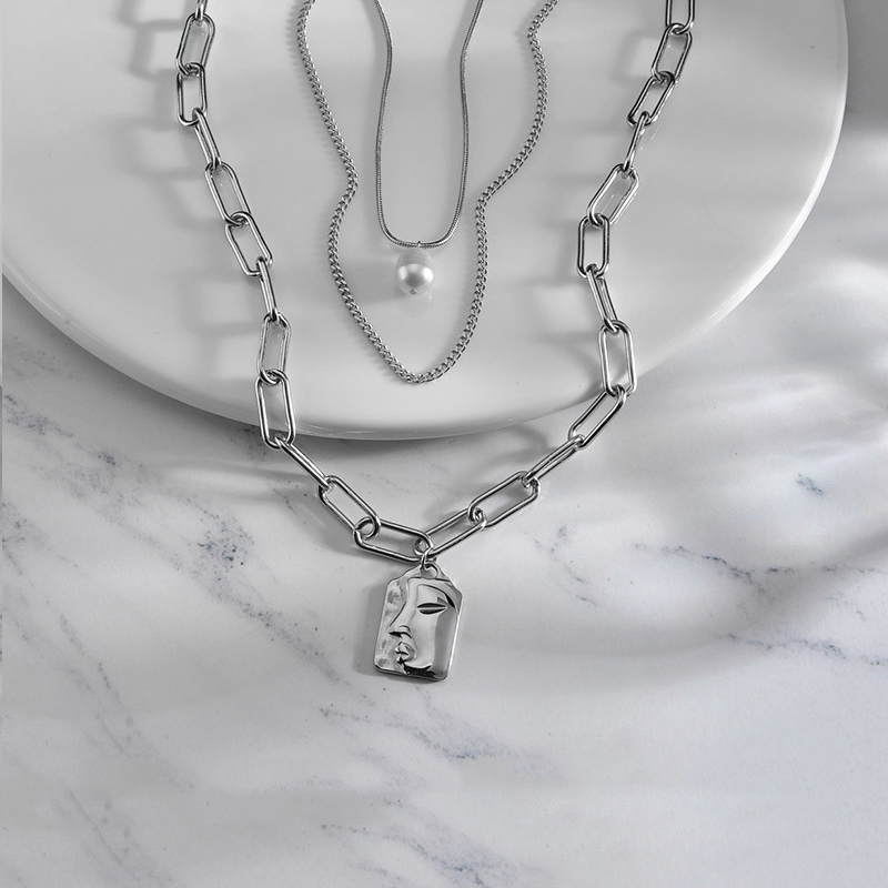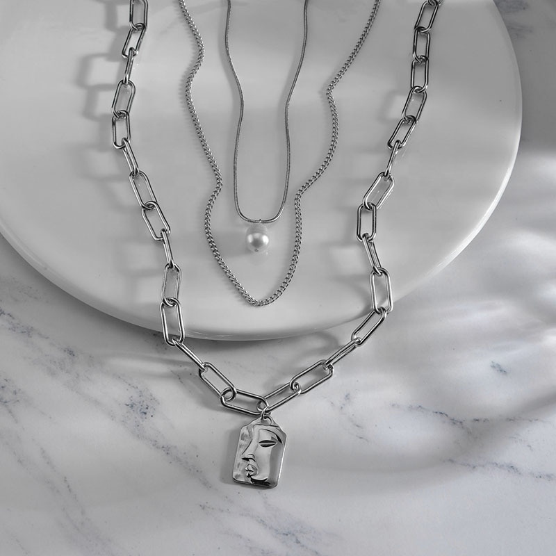 latest fashion multi chain necklace in stainless steel FACE pendant necklace