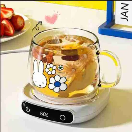 The miffy Coffee Mug Warmer Combo Set includes an efficient electric warmer with three temperature settings and a complementary glass mug. It features a splash-proof, sealed heating plate, easy one-touch operation, and an automatic shut-off function, all in a compact, stylish design perfect for any beverage enthusiast.