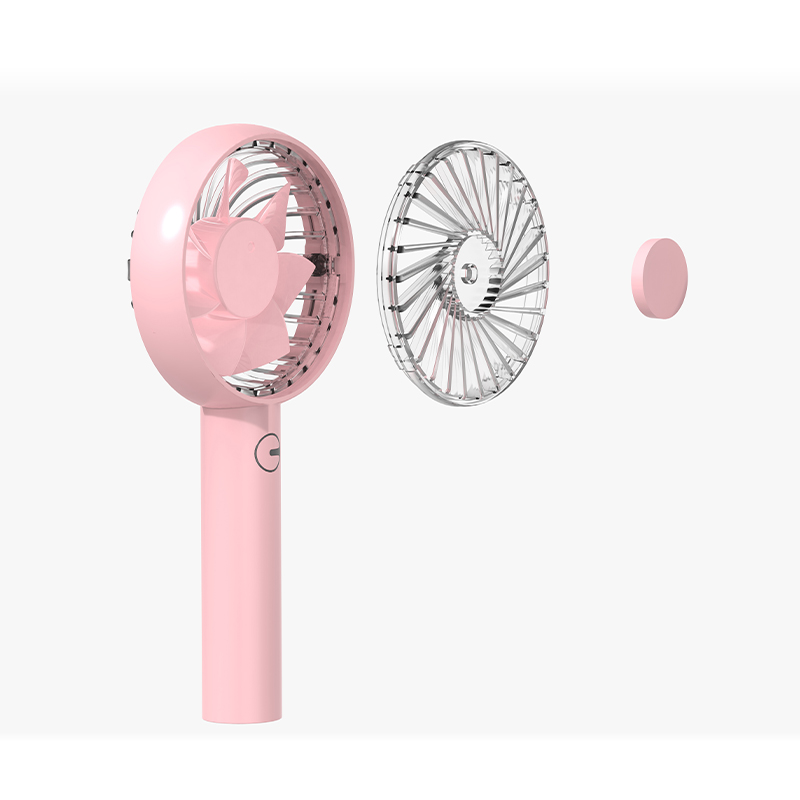 F21 is a multi-functional hand-held fan, small and cute, easy to carry, beautiful shape. Built-in KC1200MAH Battery, up and down 15 degrees can be adjusted, the mask can be removed and cleaned, improve the traditional hood can not be removed and cleaned shortcomings, four-speed wind. Equipped with anti-skid pad, portable desktop dual-use, removable base can be used as a mobile phone bracket, battery with overpass charge protection function.