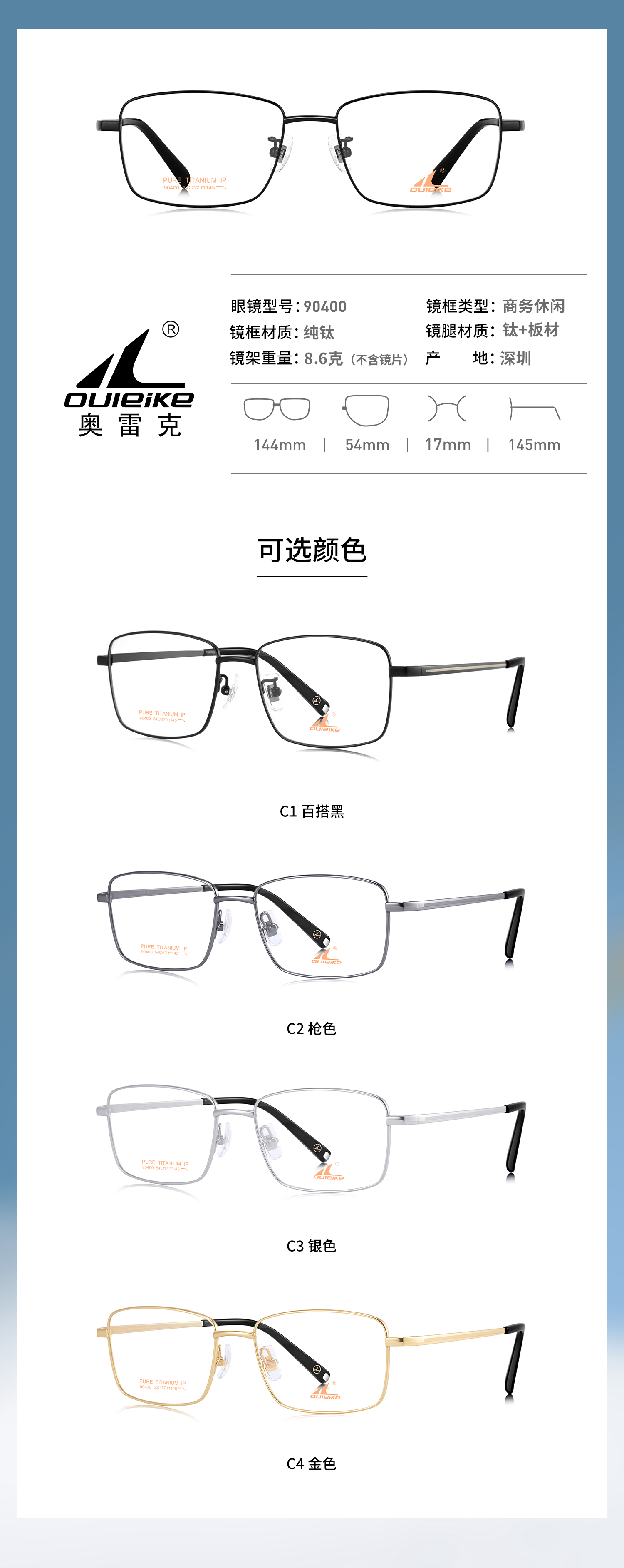 OULEIKE eyewear pure titanium optical glasses frames are lightweight, causing minimal pressure on the nose and ears for enhanced comfort. They're hypoallergenic and suitable for high-power lenses due to their light weight. The IP plating is durable and won't peel off over time. Overall, pure titanium frames are popular for their lightweightness, corrosion resistance, biocompatibility, and variety of styles.