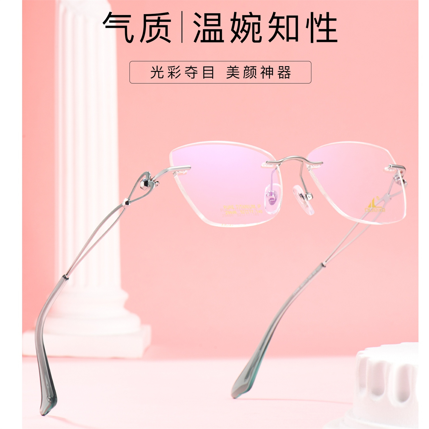 optic rimless glasses pure titanium IP Plated 29486 female