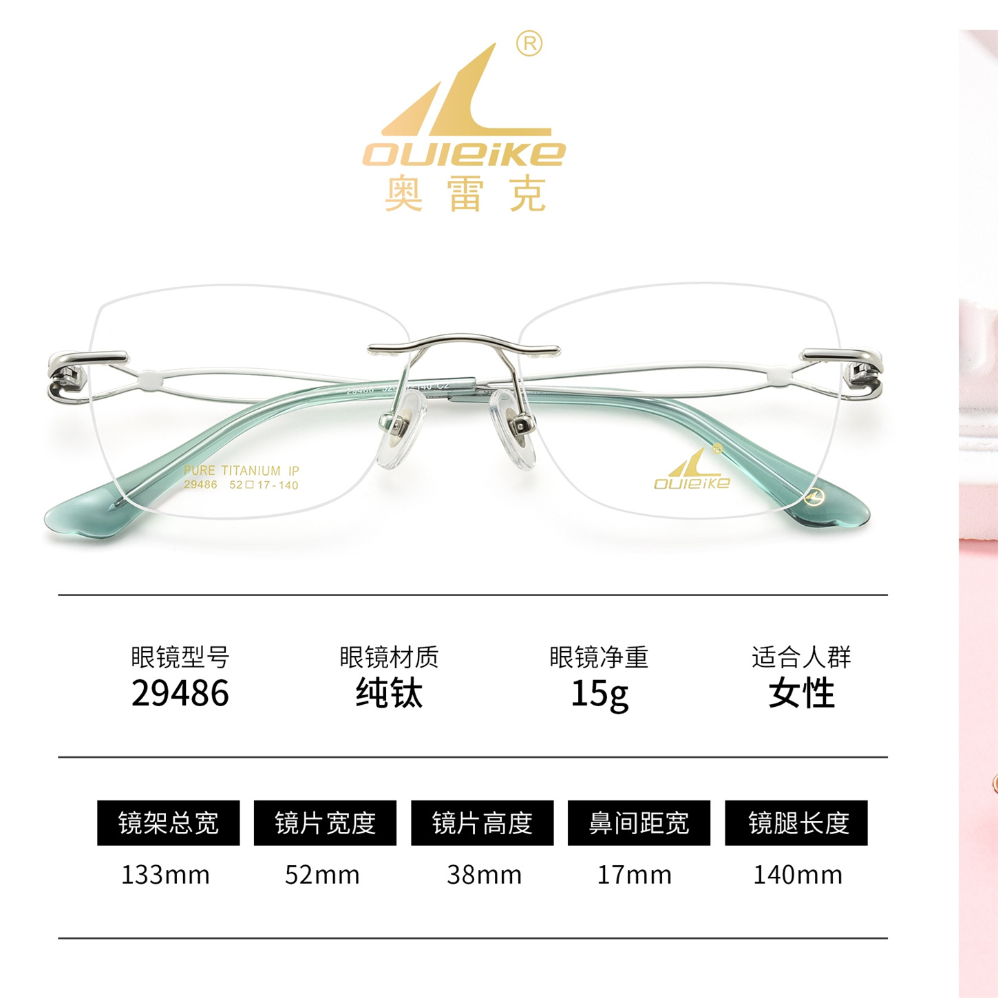 OULEIKE eyewear pure titanium optical glasses frames are lightweight, causing minimal pressure on the nose and ears for enhanced comfort. They're hypoallergenic and suitable for high-power lenses due to their light weight. The IP plating is durable and won't peel off over time. Overall, pure titanium frames are popular for their lightweightness, corrosion resistance, biocompatibility, and variety of styles.