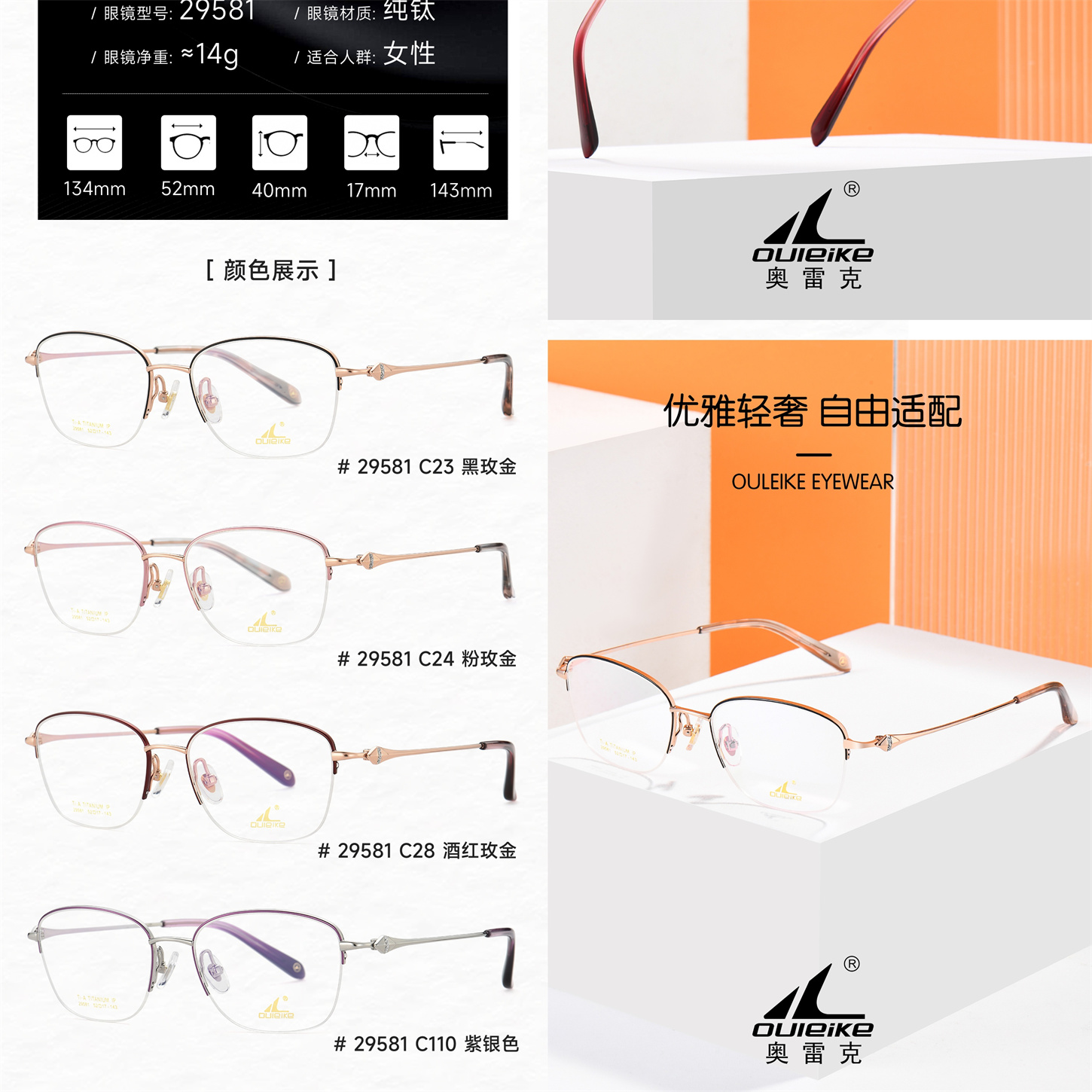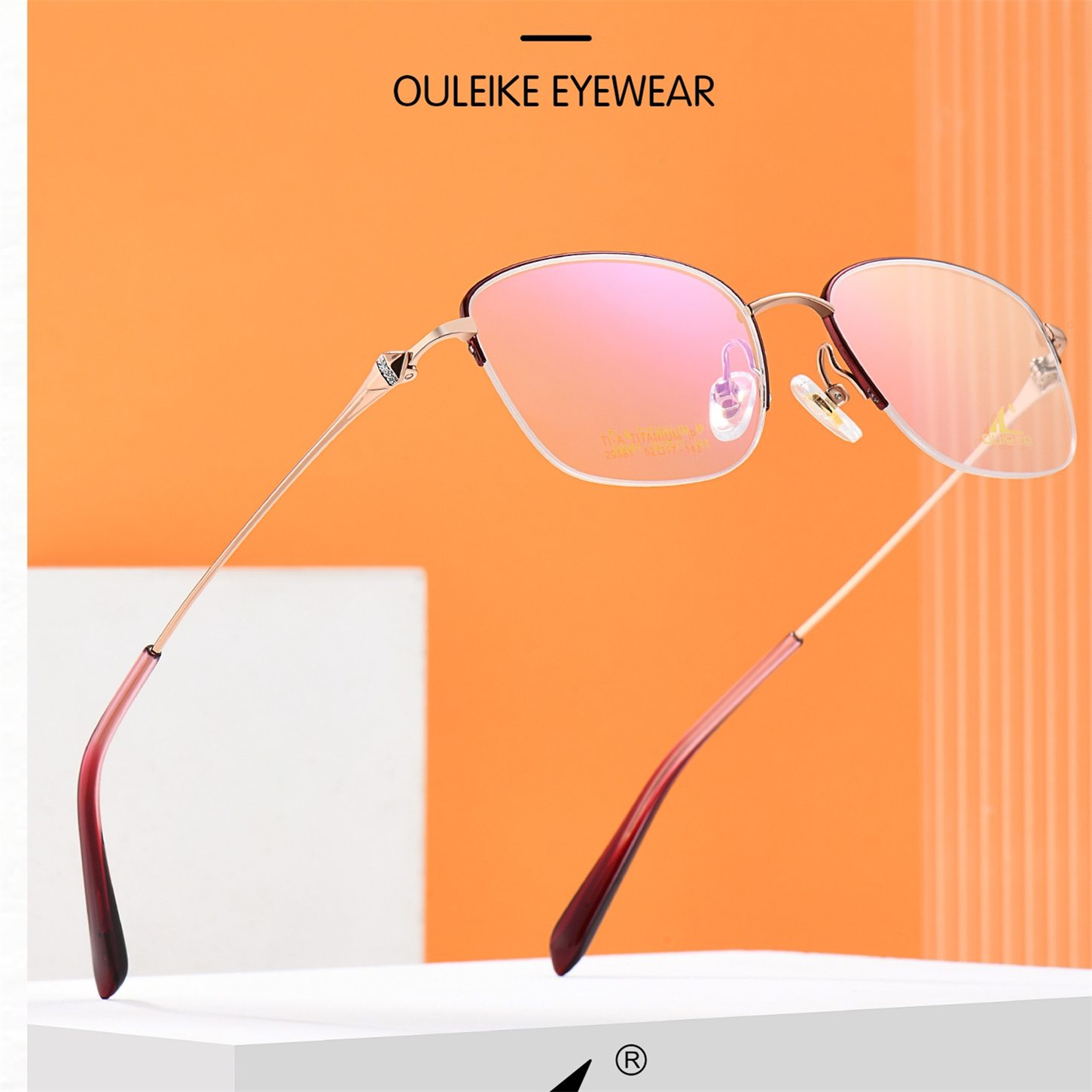 OULEIKE eyewear pure titanium optical glasses frames are lightweight, causing minimal pressure on the nose and ears for enhanced comfort. They're hypoallergenic and suitable for high-power lenses due to their light weight. The IP plating is durable and won't peel off over time. Overall, pure titanium frames are popular for their lightweightness, corrosion resistance, biocompatibility, and variety of styles.
