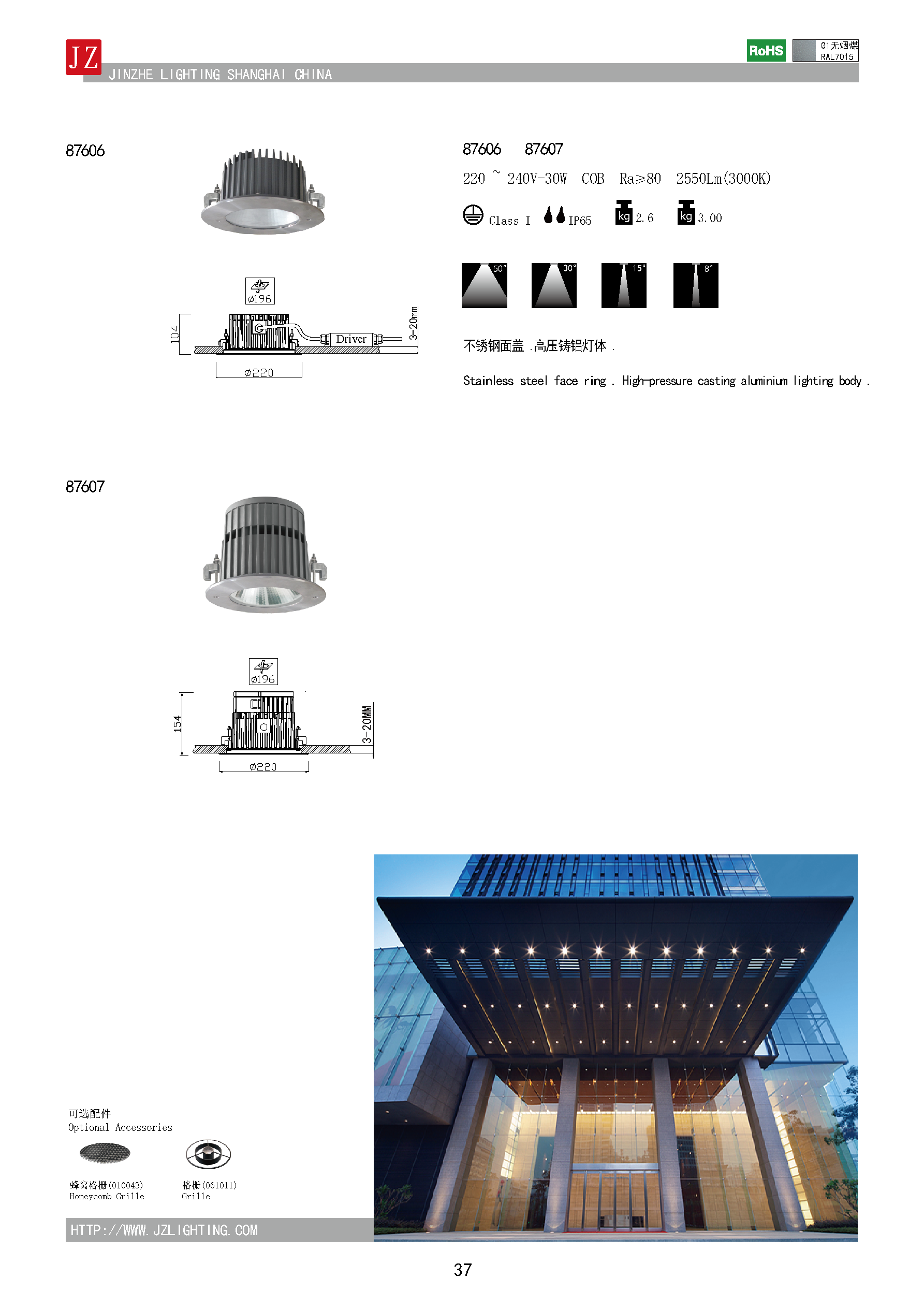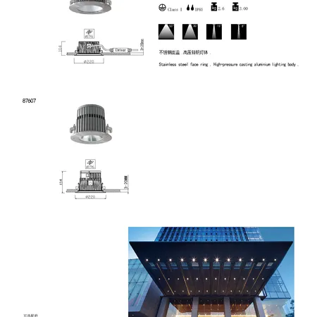Stainless steel face ring.High-pressure casting aluminium lighting body,IP65, Ra≥80 ,Optional Accessories Honeycomb and others