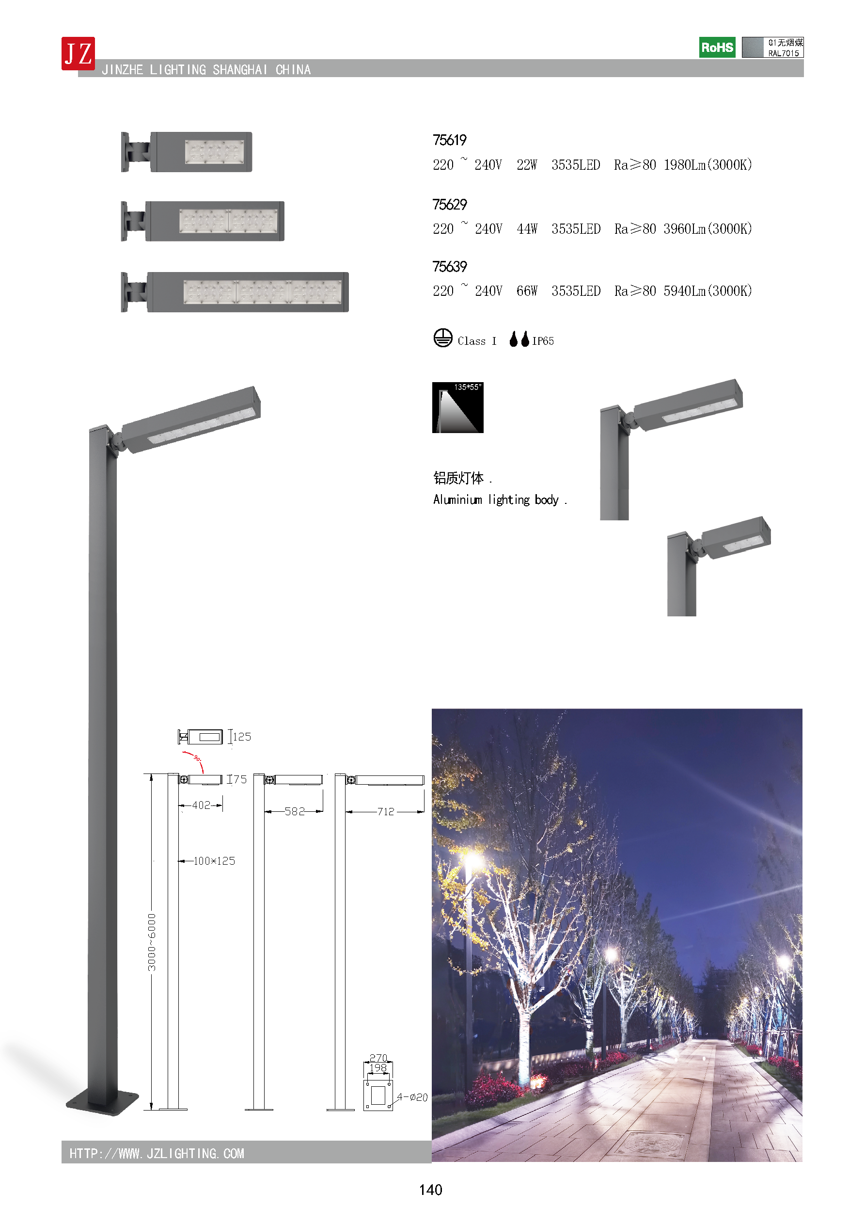 Garden Lamp: Aluminium lighting body, IP54 ,The height can be produced on request, Up to 6 meters