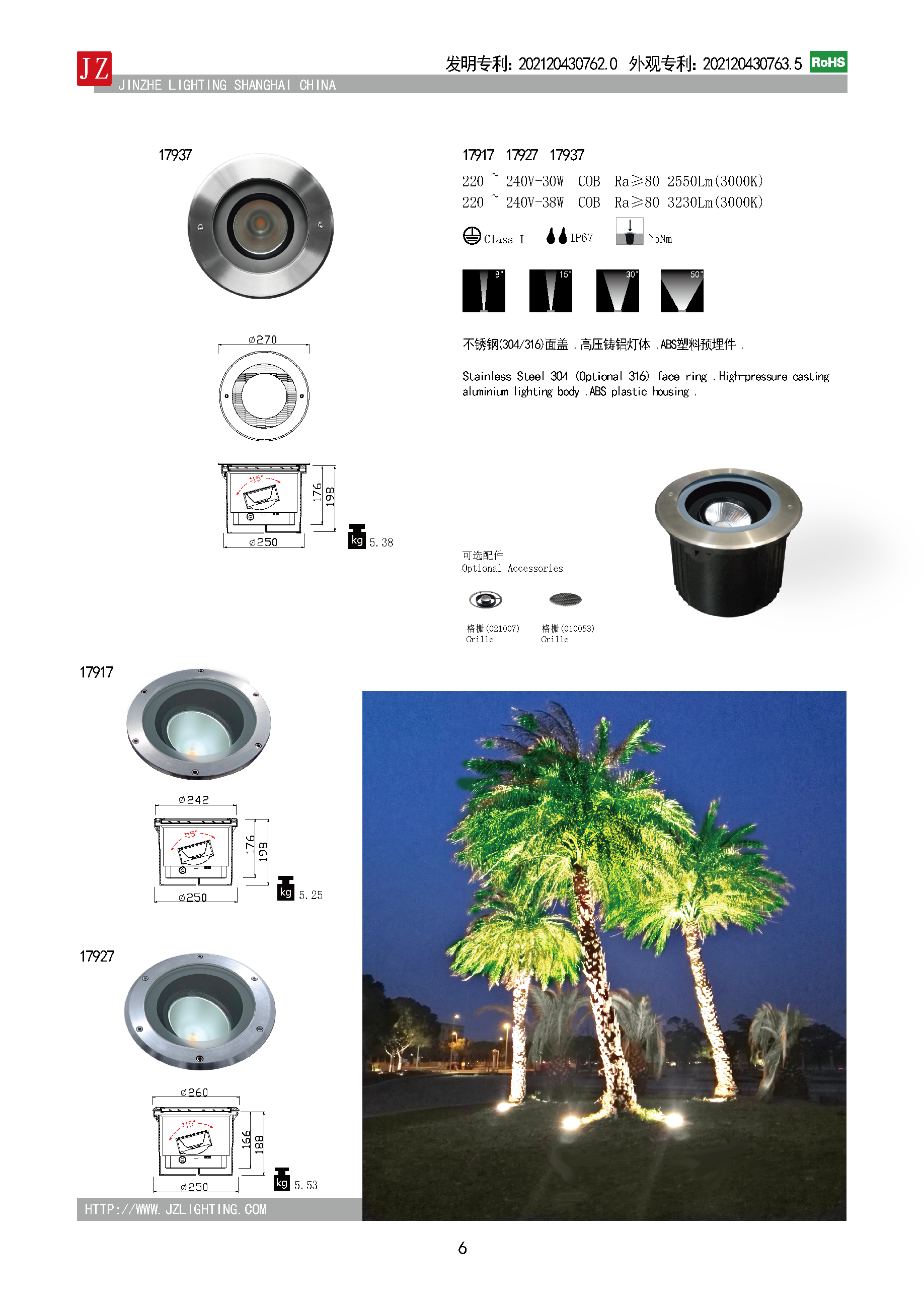 In-ground lighting: Stainless Steel 304 face ring,High-pressure casting aluminium lighting body .ABS plastic housing, IP67 Ra≥90