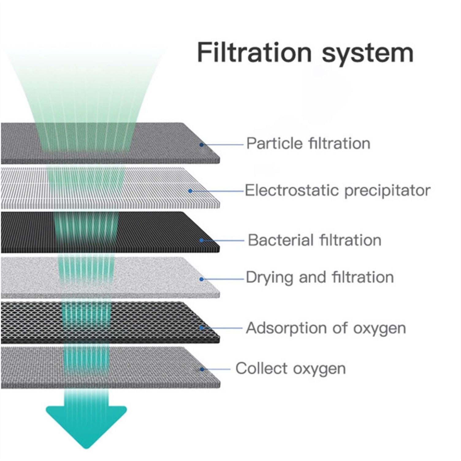 This product consists of air compressor, zeolite molecular sieve, changeover switch, control panel, display panel, flow meter and humidification cup.