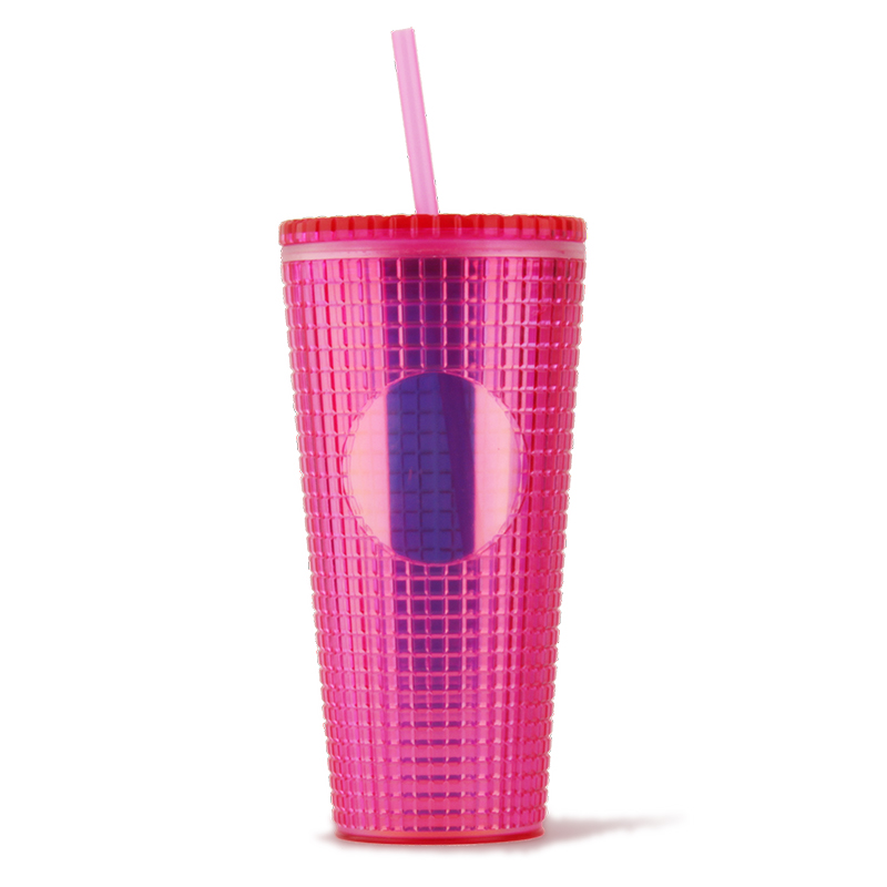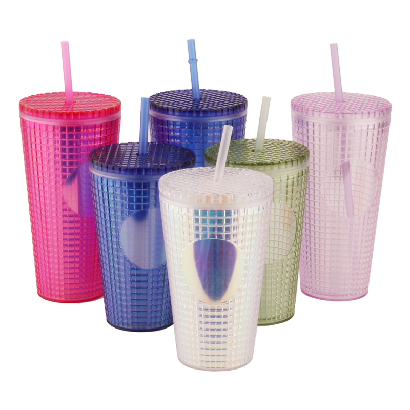 plastic Different Sizes Colorful Plastic Double Wall Tumbler Cups With Straw