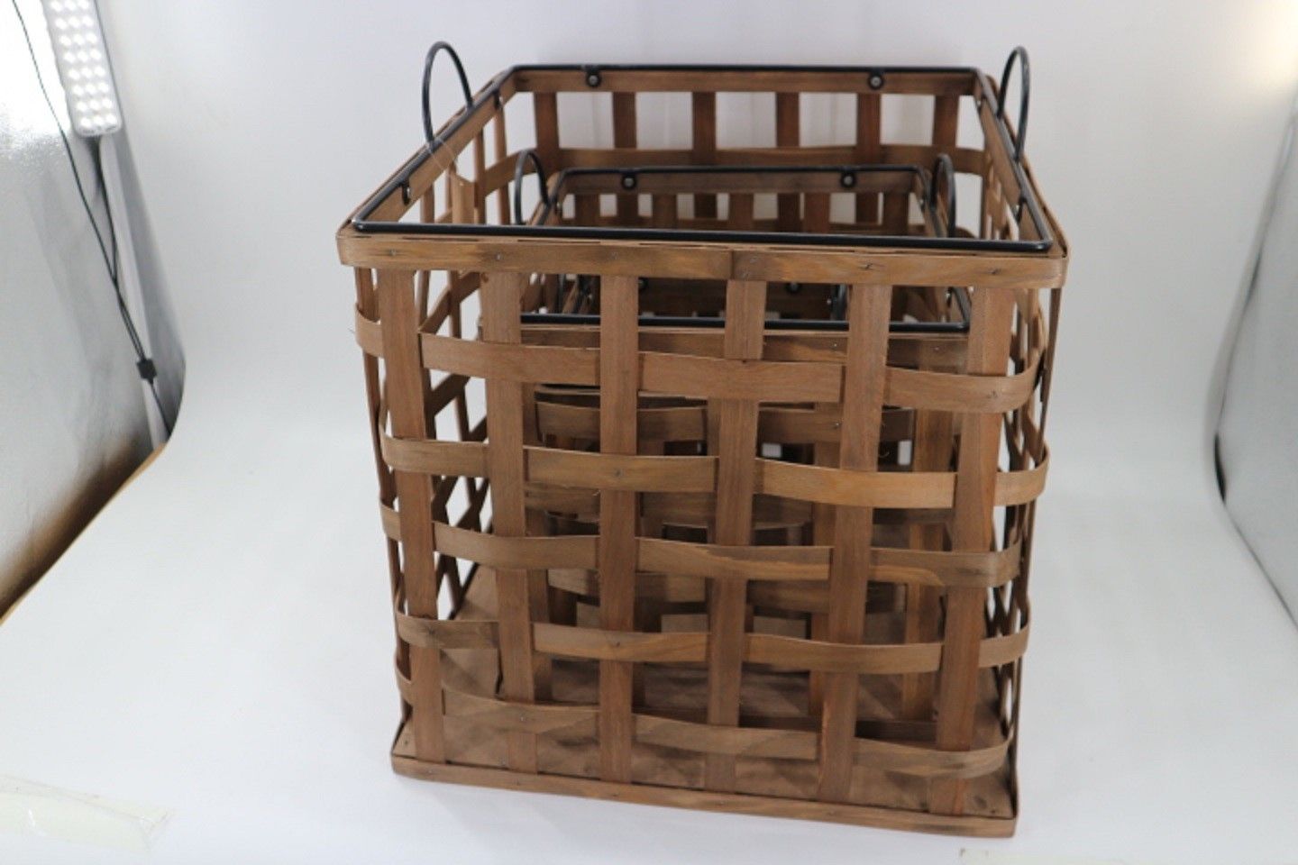 WOODEN BASKETS, USED FOR STORAGE AND LOG BASKETS.