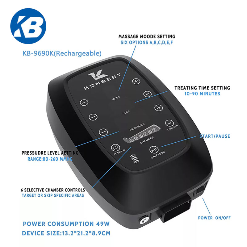 Pressure therapy is a high class lymphatic drainage and Spa natural health beauty machine in medical and beauty market. In beauty market, the compression system has a soft massage from feet to heart, and it is slimming treatment by drainage dissolved fat cells or bad deposit. In medical market, it has a sequential squeezing from distal to proximal, thus help to improve the circulation of blood and lymph, and to prevent the DVT and PE, trauma, inflammation and edema relief