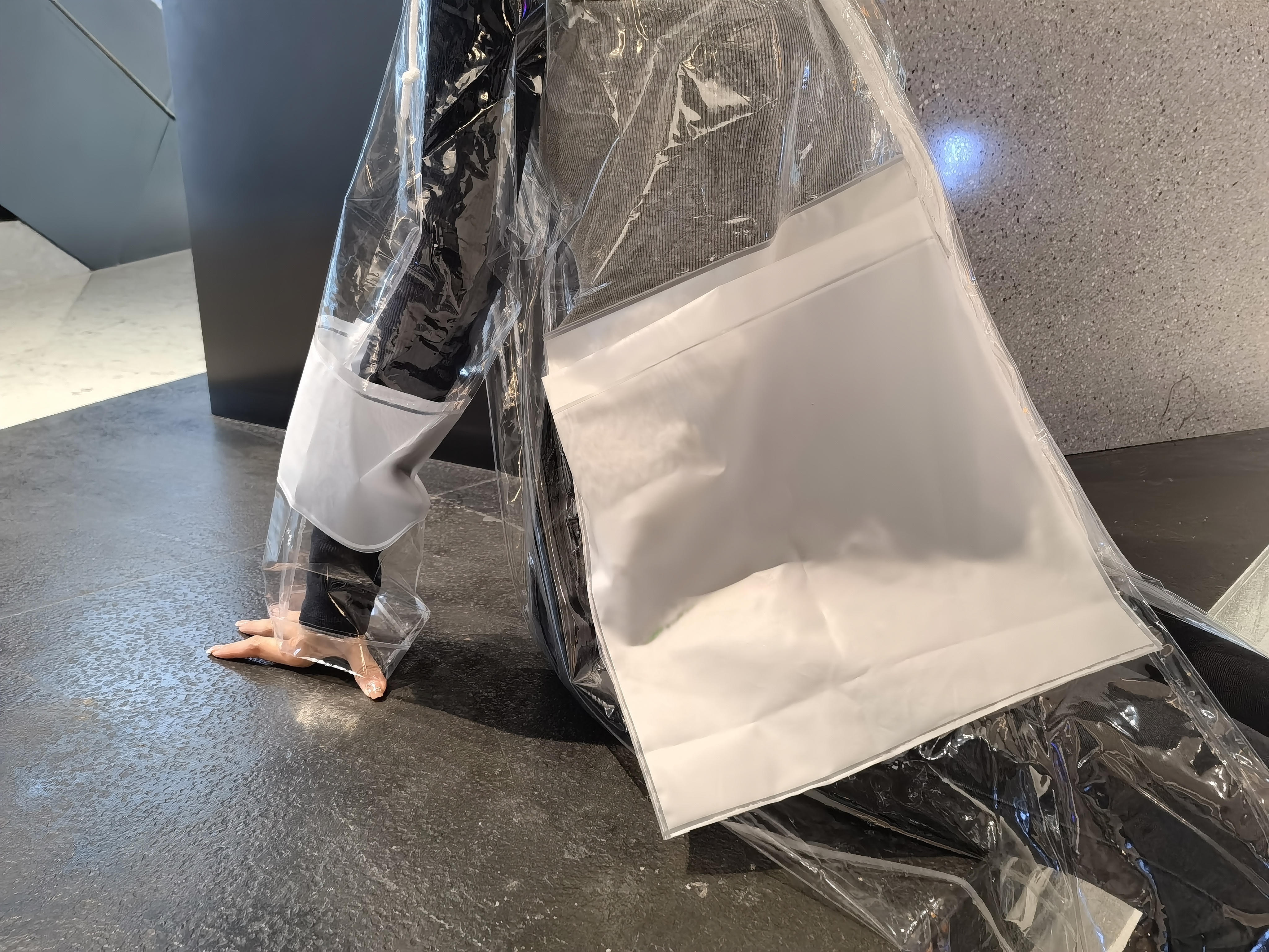 transparent raincoat with colorful papping