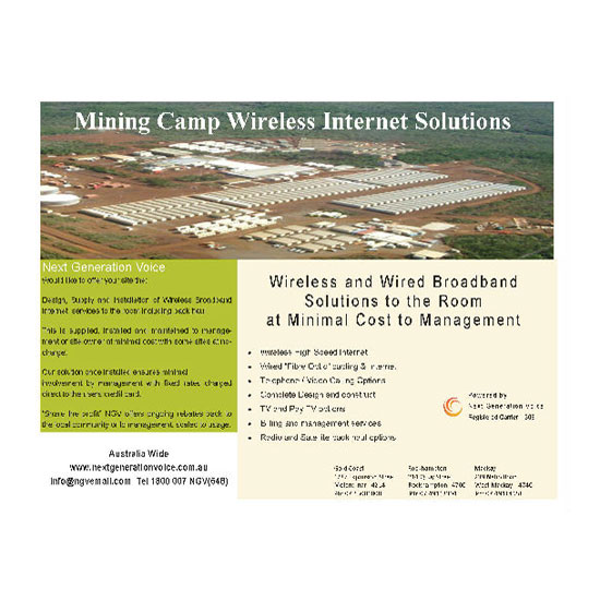 The quality wireless Internet solutions are specially designed for mining camps. They are implemented at a minimal cost. Our company also ensures complete solutions to the room.