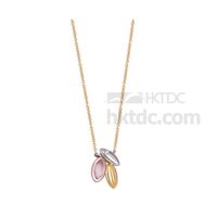 14K Gold Necklace with Rose Quartz and Diamond