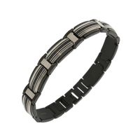 Two Tone Stainless Steel Bracelet with Black Diamonds