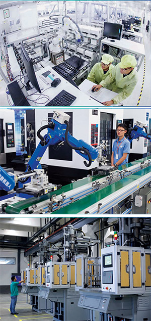 作为支柱产业之一,东莞电子信息制造业去年完成规模以上工业增加值1,374.3亿元人民币,同比增长11.5%;电子信息制造业占规模以上工业比重由2017年的34.6%提升至2018年的35.2%;对规模以上工业的增长贡献率由2 0 1 7 年的55.9%提升至2018年的60.6%。全市电子信息制造业的快速发展离不开龙头企业的带动。去年,华为丶OPPO丶Vivo三大手机企业合计完成增长值同比增长32%,拉动规模以上工业增长4.37个百分点。