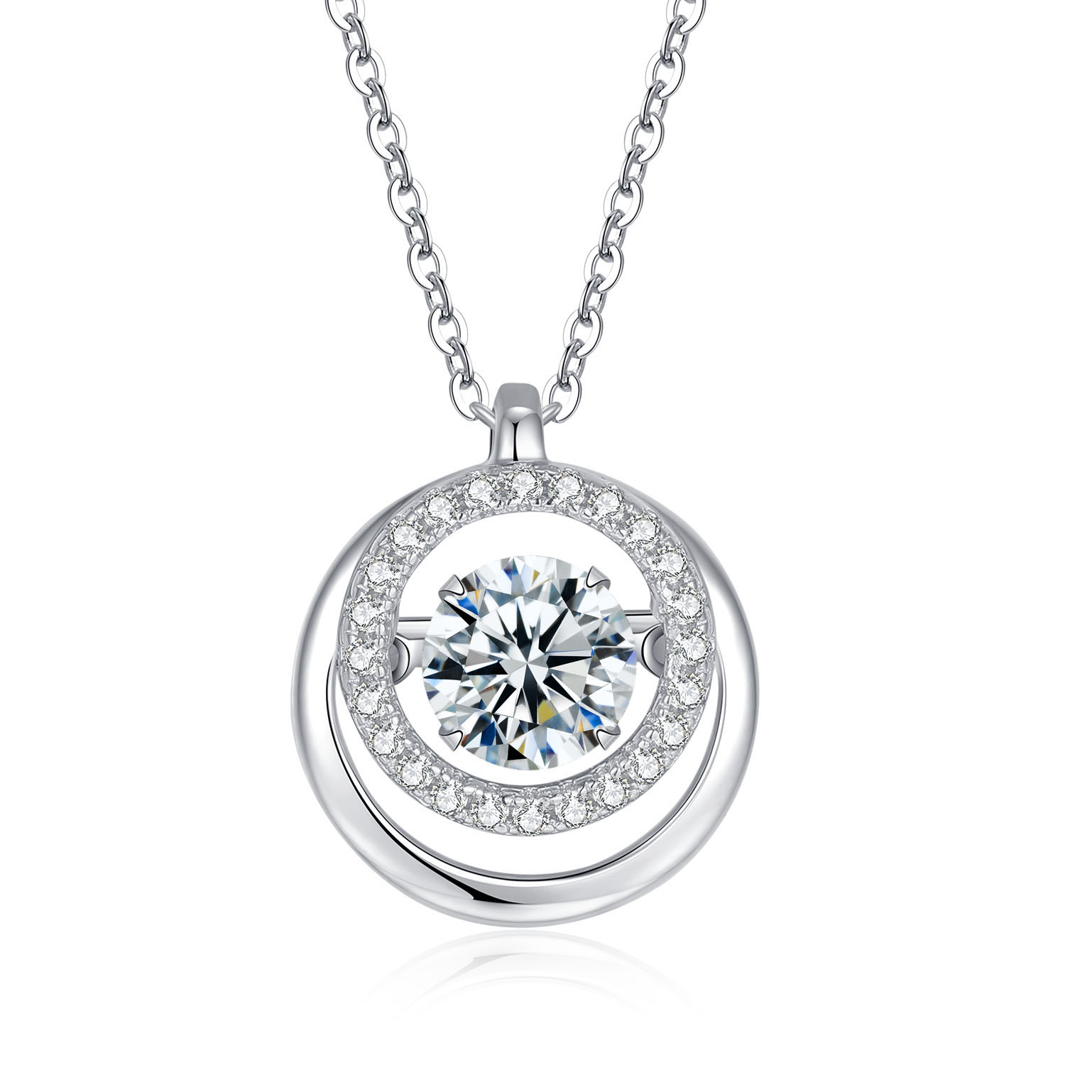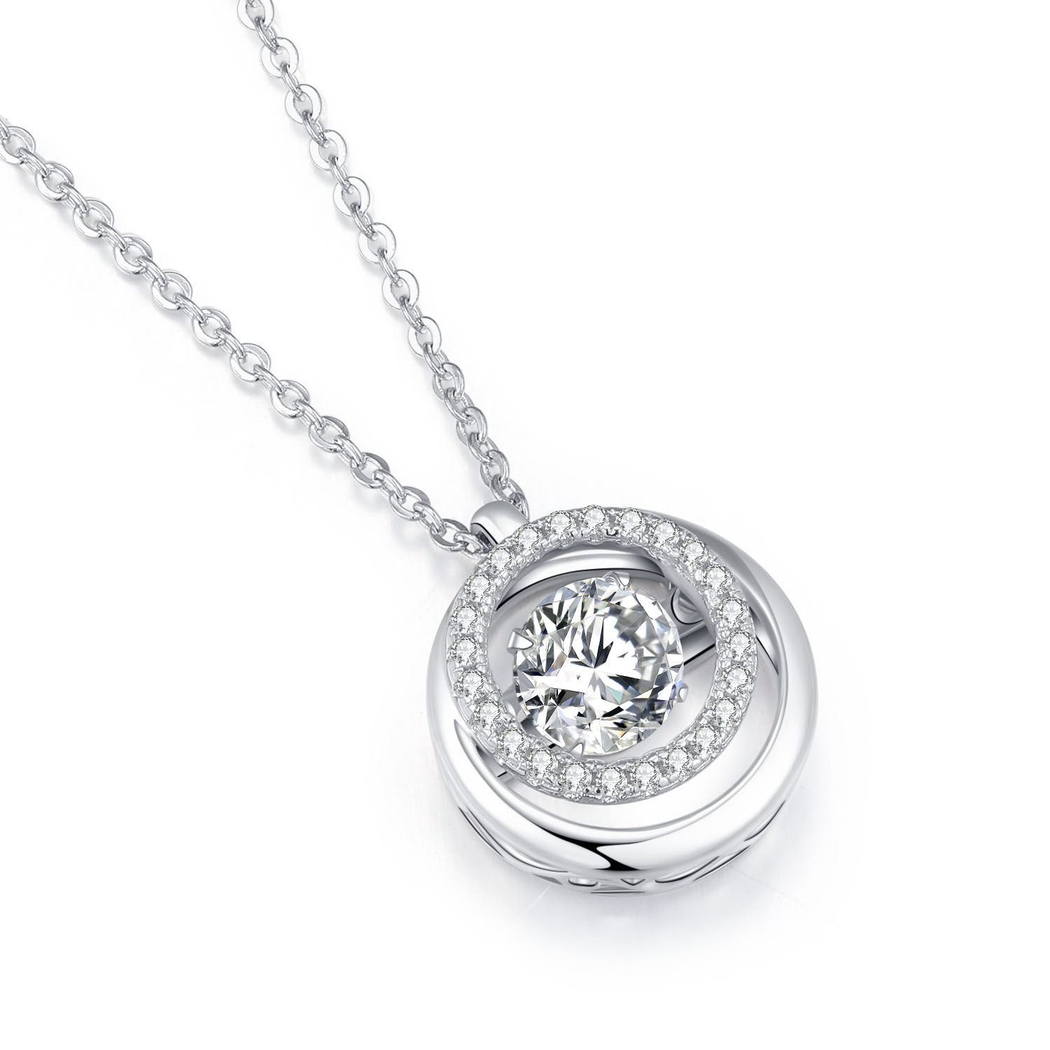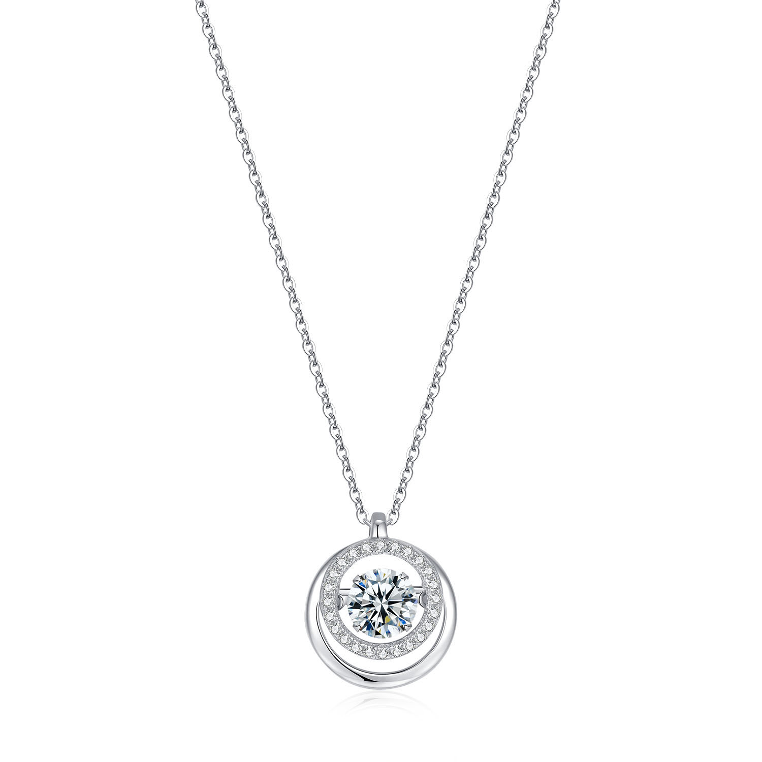 Imported from Japan, exclusive "Dancing Stone" suspends in a 3D inlay with professional craftsmanship. The unique double-arm suspension design allows the pendant to move and sparkle rapidly, resembling a dancing motion.