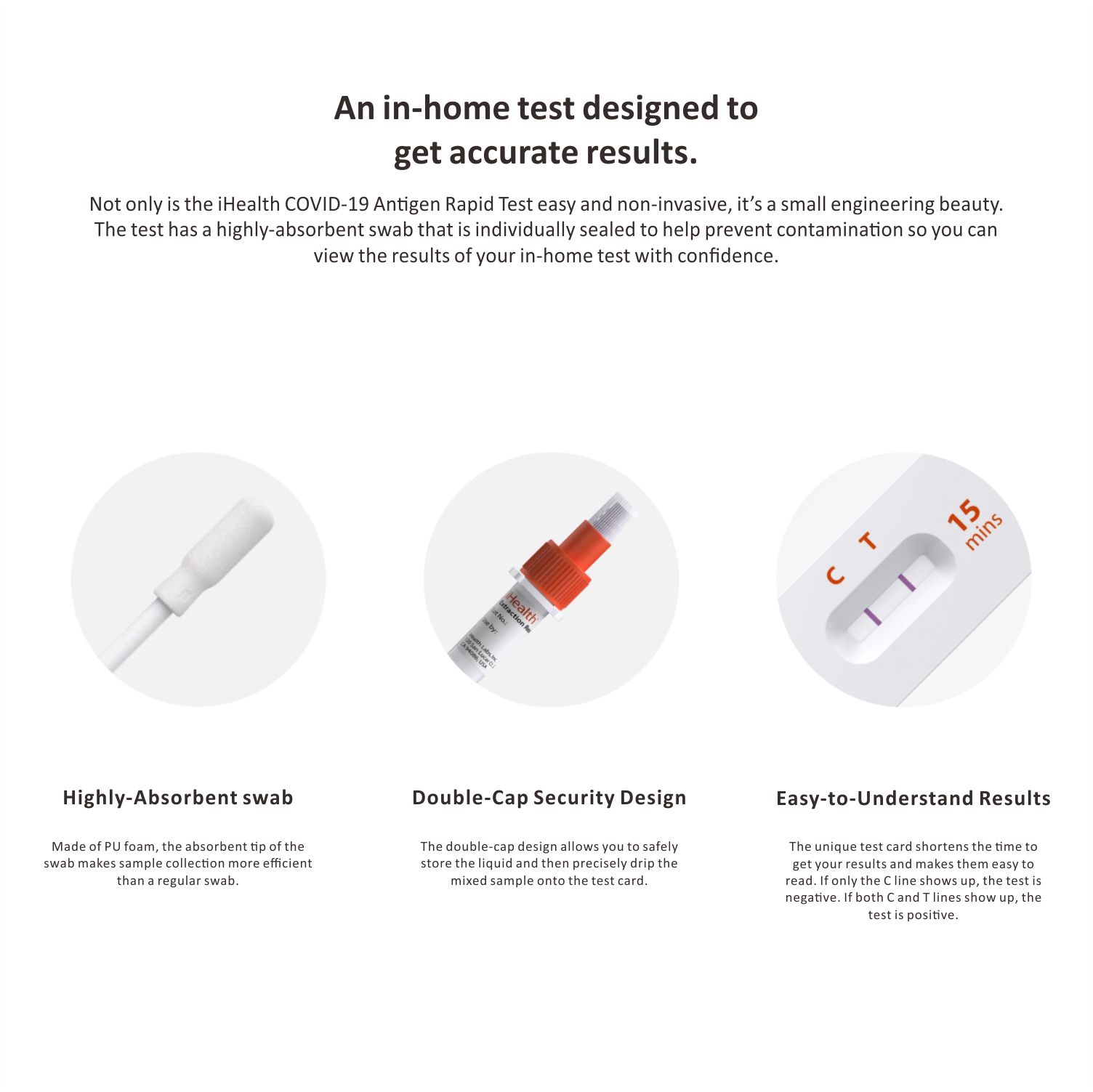 The iHealth® COVID-19 Antigen Rapid Test is a lateral flow assay intended for the qualitative detection of nucleocapsid protein antigen from SARS-CoV-2.