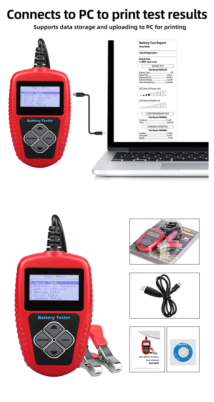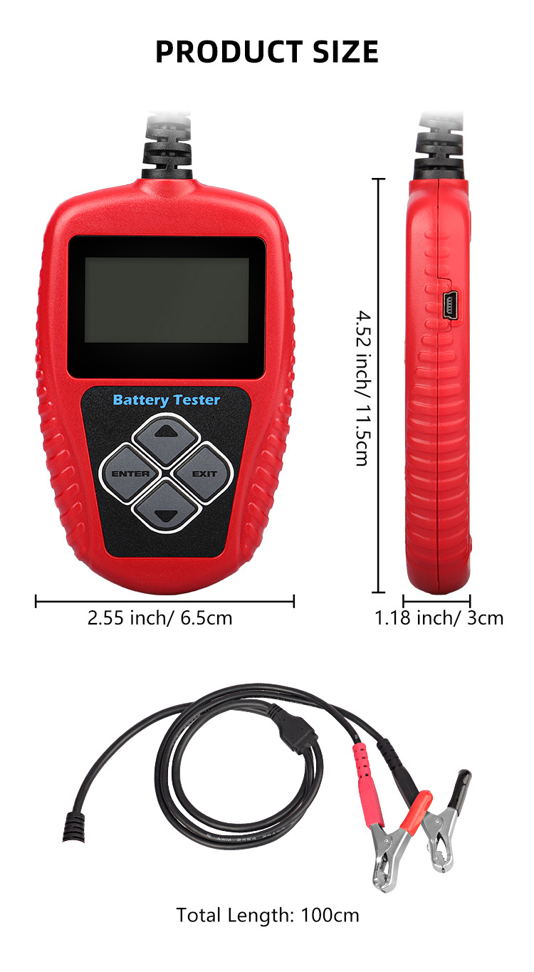 Use to test a wide range of 12V batteries (Starting [SLI], Deep Cycled and Marine) of Wet (Flooded), VRLA or Maintenance Free (MF), Sealed Maintenance Free (SMF), Absorption Glass Mat (AGM) and GEL cell. The major battery standards JIS, SAE, EN, DIN and IEC are supported.