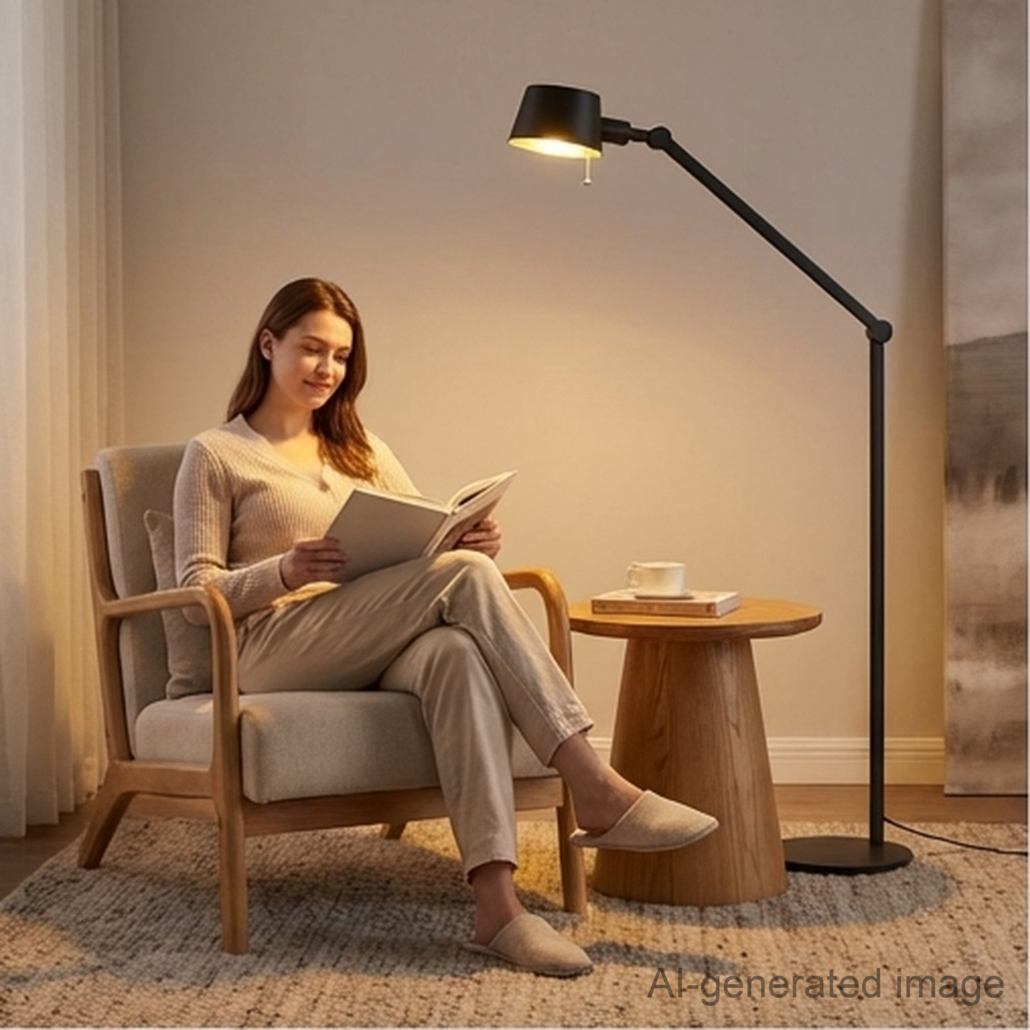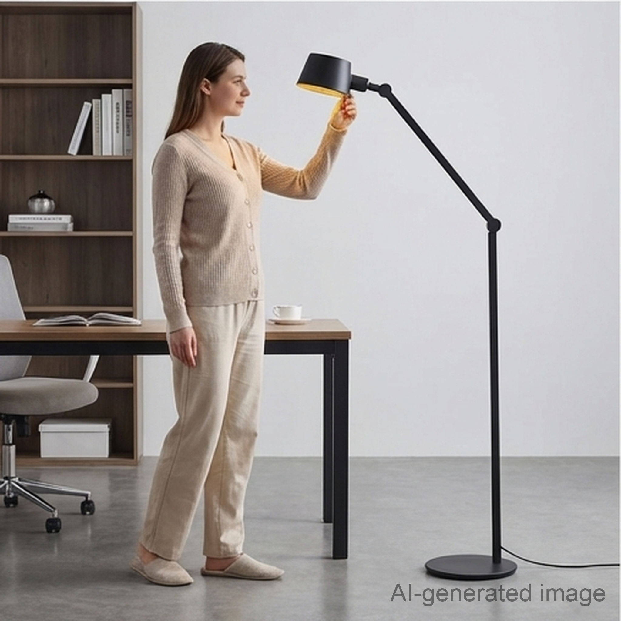 Light source: E27 1x60W Size: 250~850x250xH935~1730 mm Metal color: black metal base, gold metal part HS code: 940529 / IP20