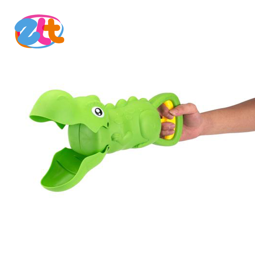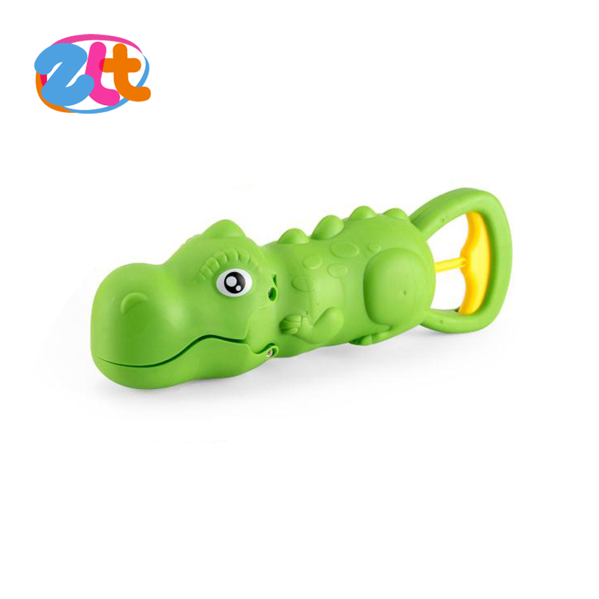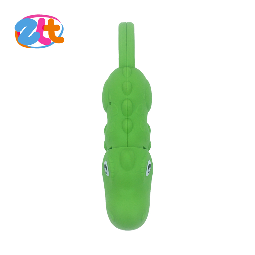 1. Squeeze-and-grab pool toy in a bright-green dinosaur shape.
