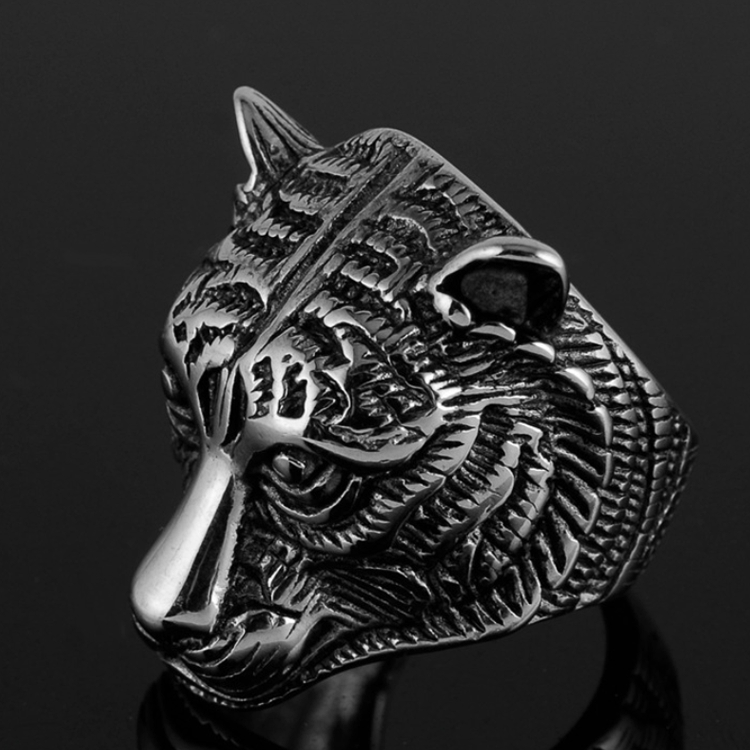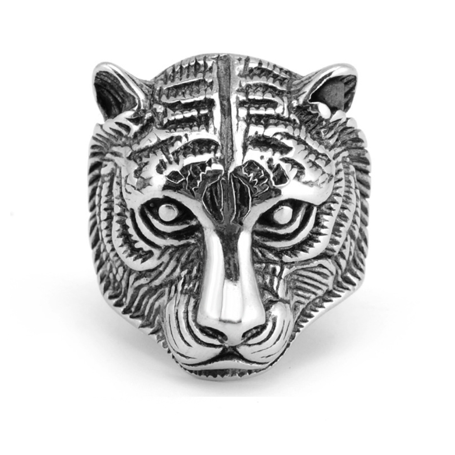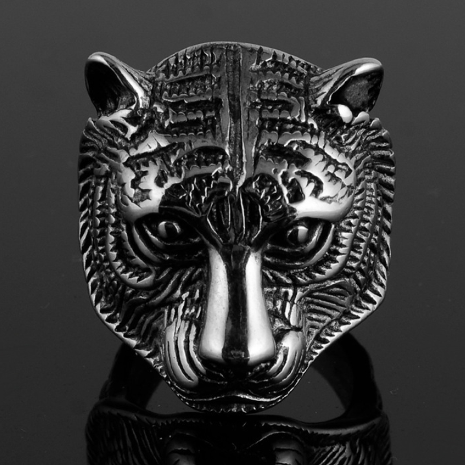 European and American style stainless steel punk ring personality retro tiger head titanium steel ring