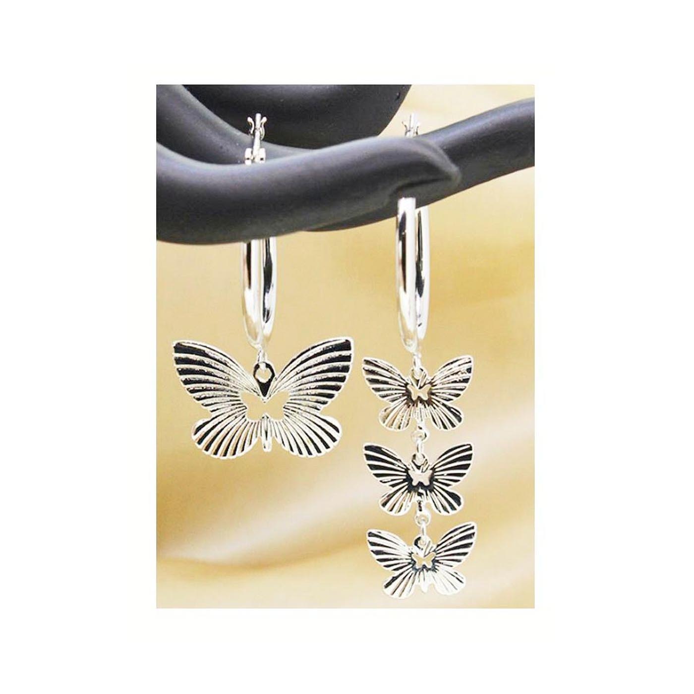 As shown is a high-fashion silver plated butterfly style charm alloy parts drop earring.