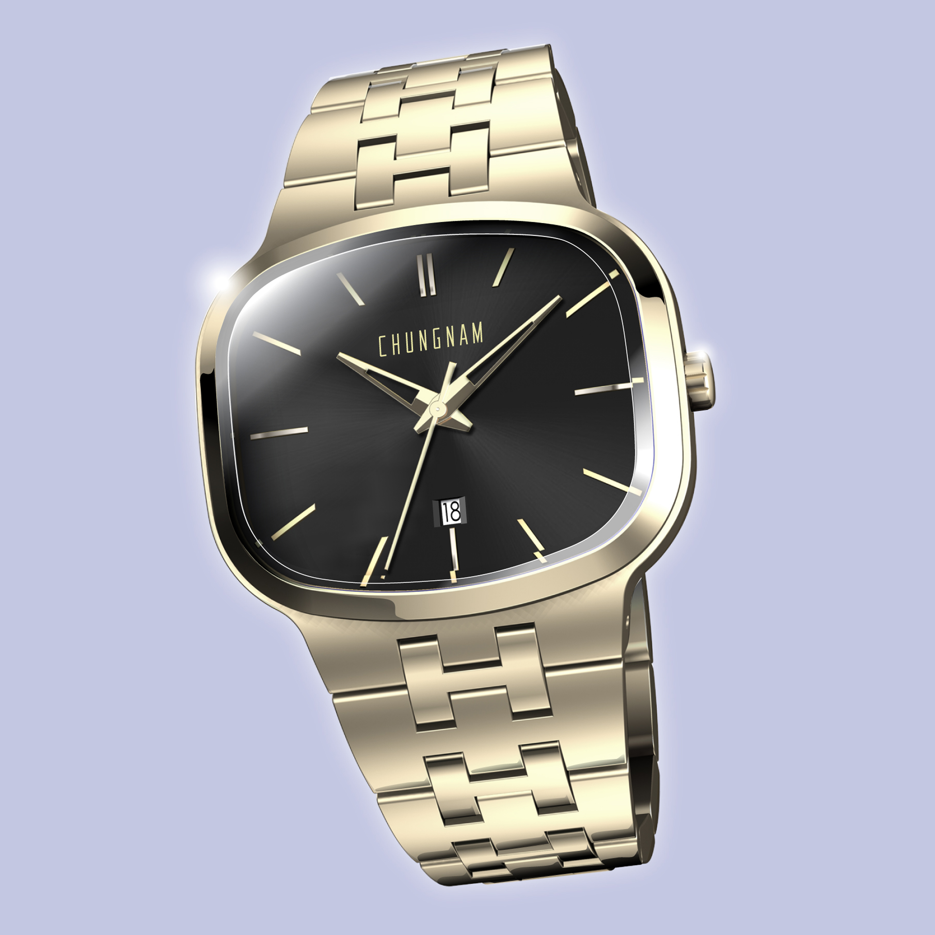 Japanese quartz movement, 3 ATM water resistant, steel case and steel bracelet.