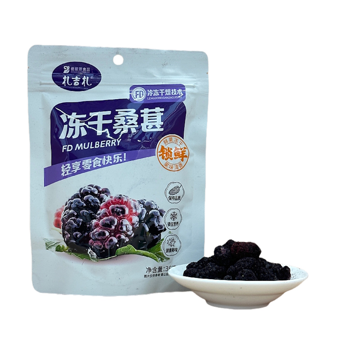 Fresh mulberries are processed using vacuum freeze-dried (FD) technology to lock in freshness, nutrients, and natural flavor, resulting in delicious FD whole mulberries.