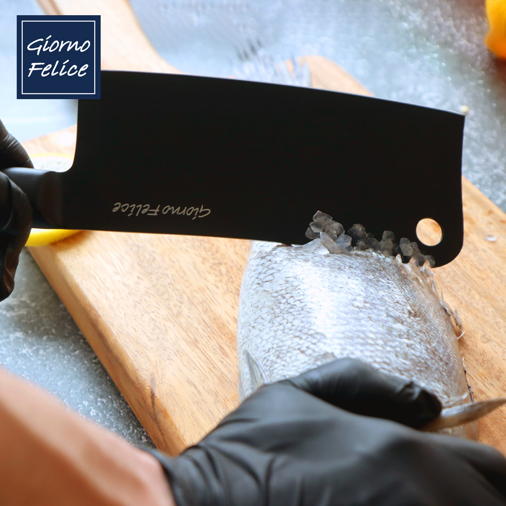 | Introducing the Stainless Steel Black Cleaver (GF-CCB), a must-have tool for any kitchen. Crafted from durable stainless steel with a 3cr13 blade and a 430 handle, this cleaver features a rubber coating for a secure grip and easy maintenance. It boasts a one-piece structure that eliminates food residue between the blade and handle, preventing the growth of germs and bacteria. The Stainless Steel Black Cleaver is designed for optimal performance in various kitchen tasks. Its rubber coating helps reduce food sticking, making it easier to work with ingredients. The cleaver also includes a sawtooth edge, specially designed to efficiently strip fish scales and handle other tough cutting tasks with ease. This versatility makes it an invaluable tool for both everyday cooking and more demanding culinary challenges. The Stainless Steel Black Cleaver (GF-CCB) is not just a kitchen tool, but a reliable partner in your culinary adventures. Whether you're a professional chef or a home cook, this cleaver offers the durability, efficiency, and ease of use you need to enhance your cooking experience. |