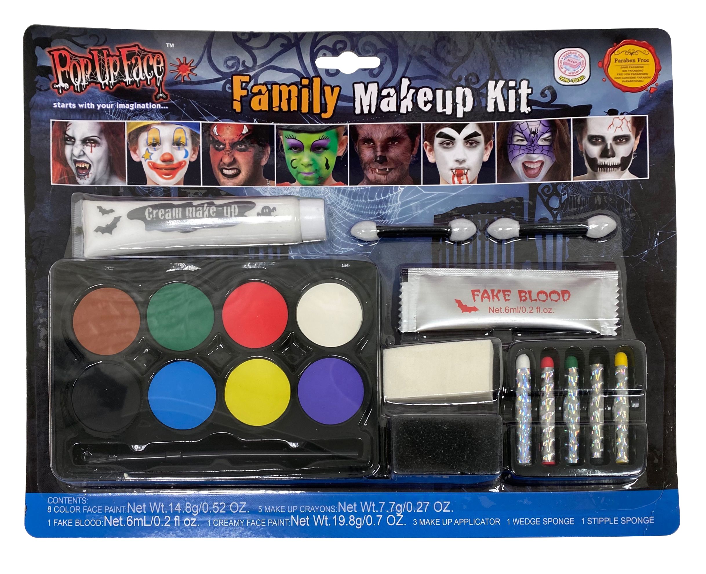 Content in this package: 8pcs x Face Paint (oil Base) 3pcs x Applicator 5pcs x Face Crayon (Oil Base) 2pcs x Sponge 1pc x Fake Blood 1pc x Creamy Face Paint Packing: Blister card Product Size: 30.5 x 24 cm