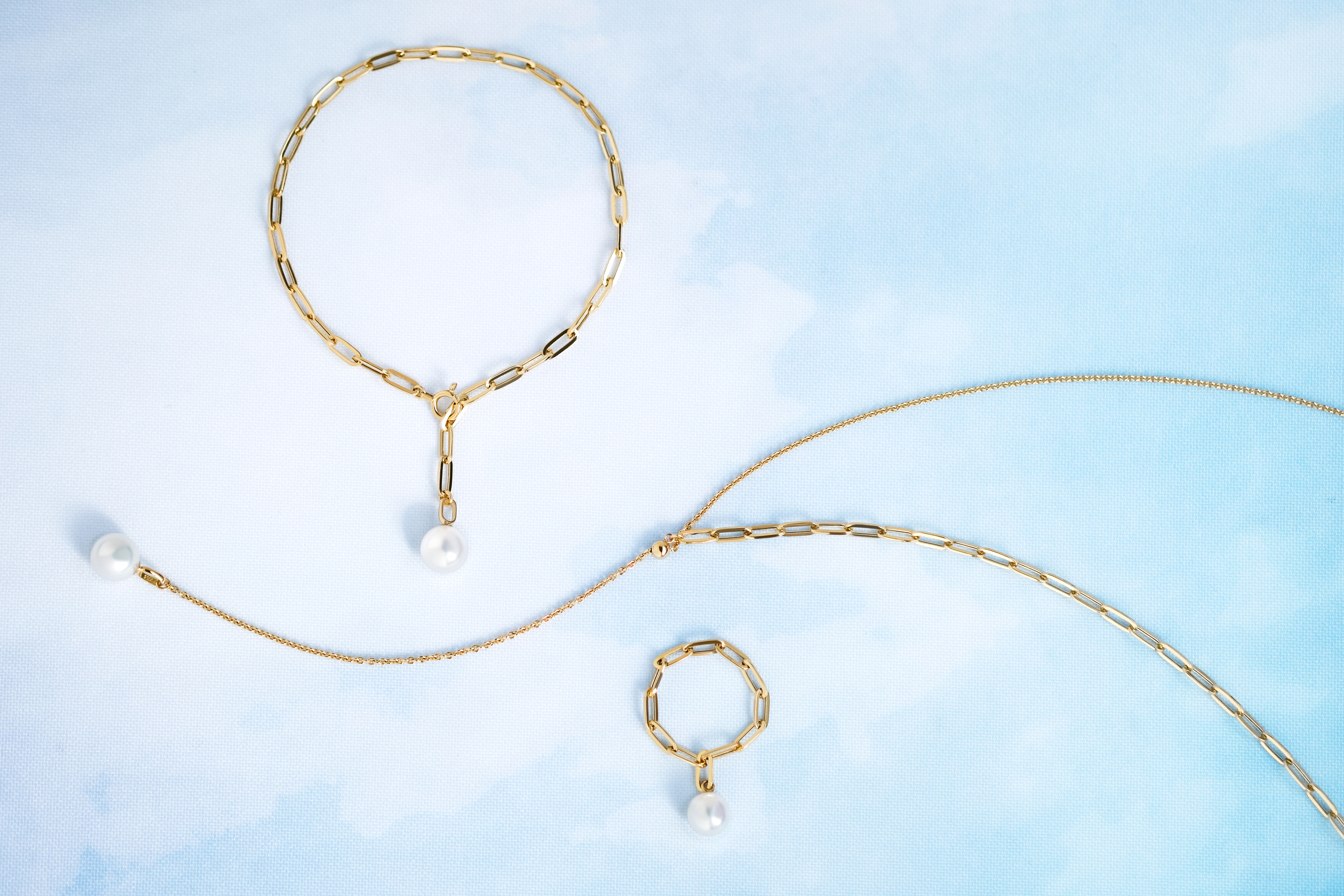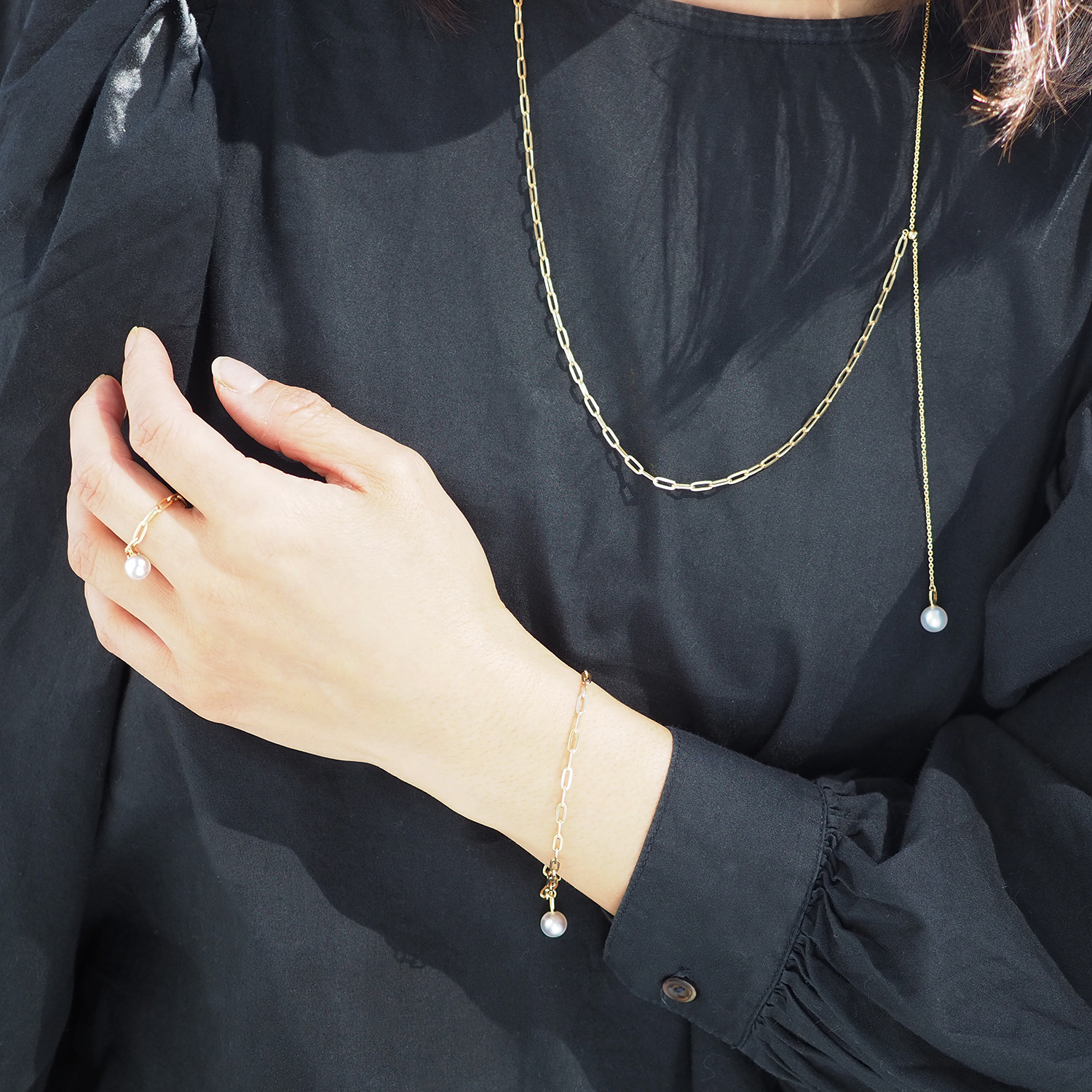 The feature is to use Untreated Natural Color & Koshimono Akoya pearls.