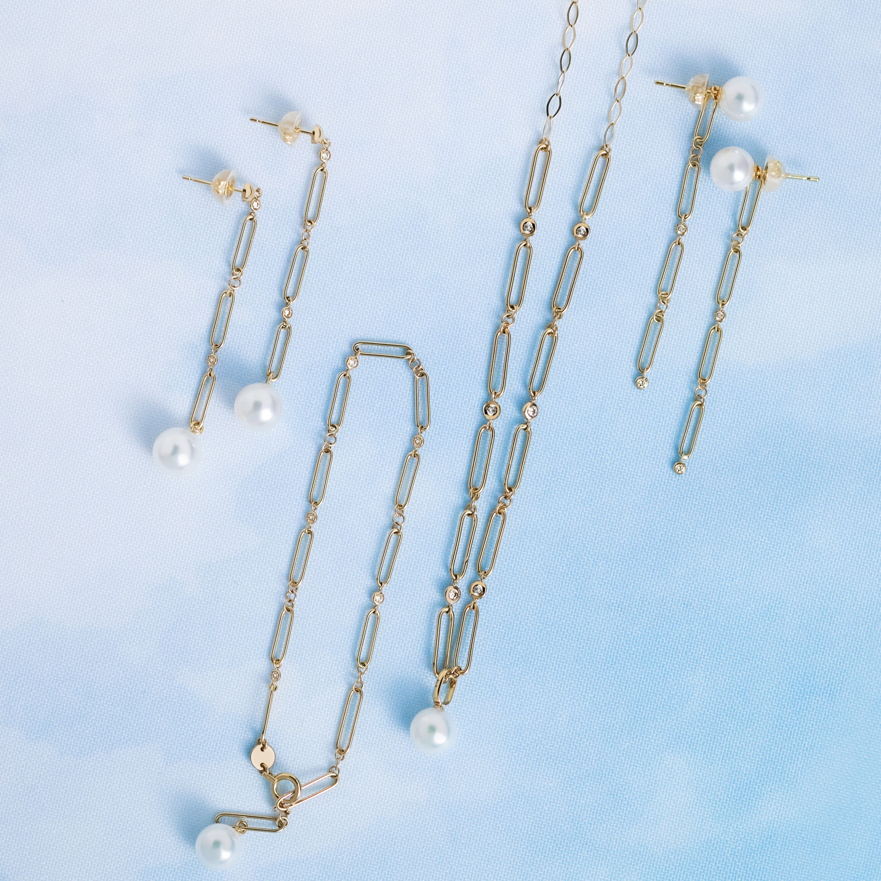 The feature is to use Untreated Natural Color & Koshimono Akoya pearls.