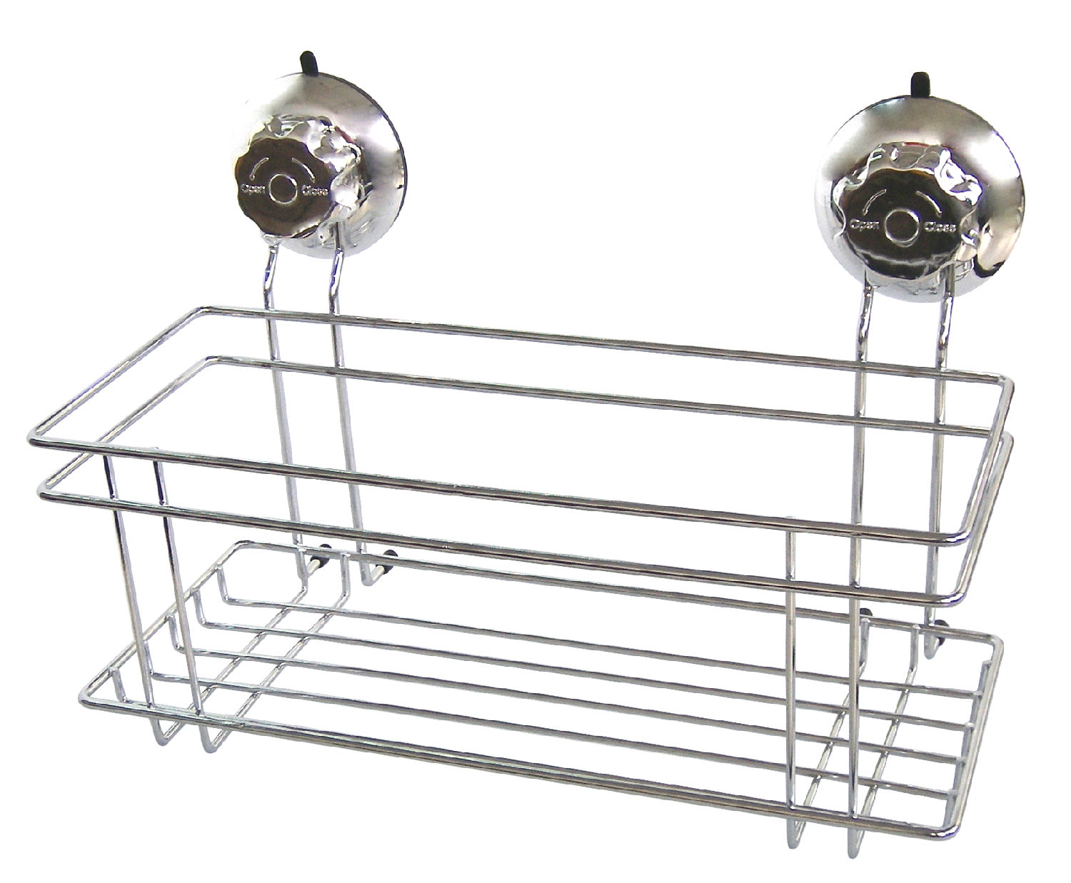 Highlighted here is a chrome rectangular kitchen basket mounted on strong suction cups. The suction cups have loading capacity of 5kg each for secure attachment. This kitchen basket is ideal for glass surface and non-porous tiles.
