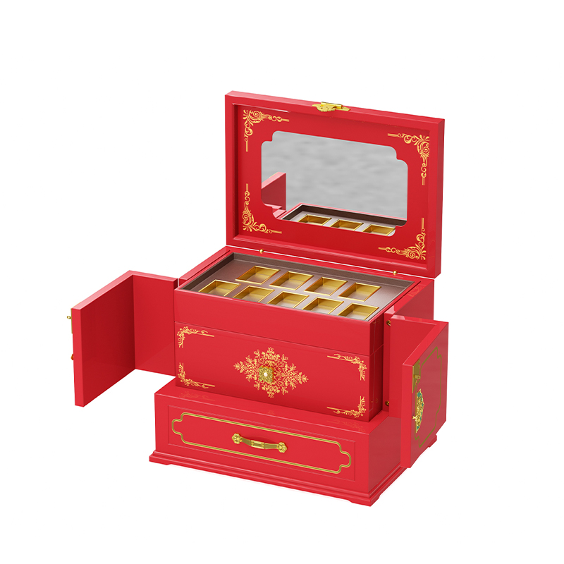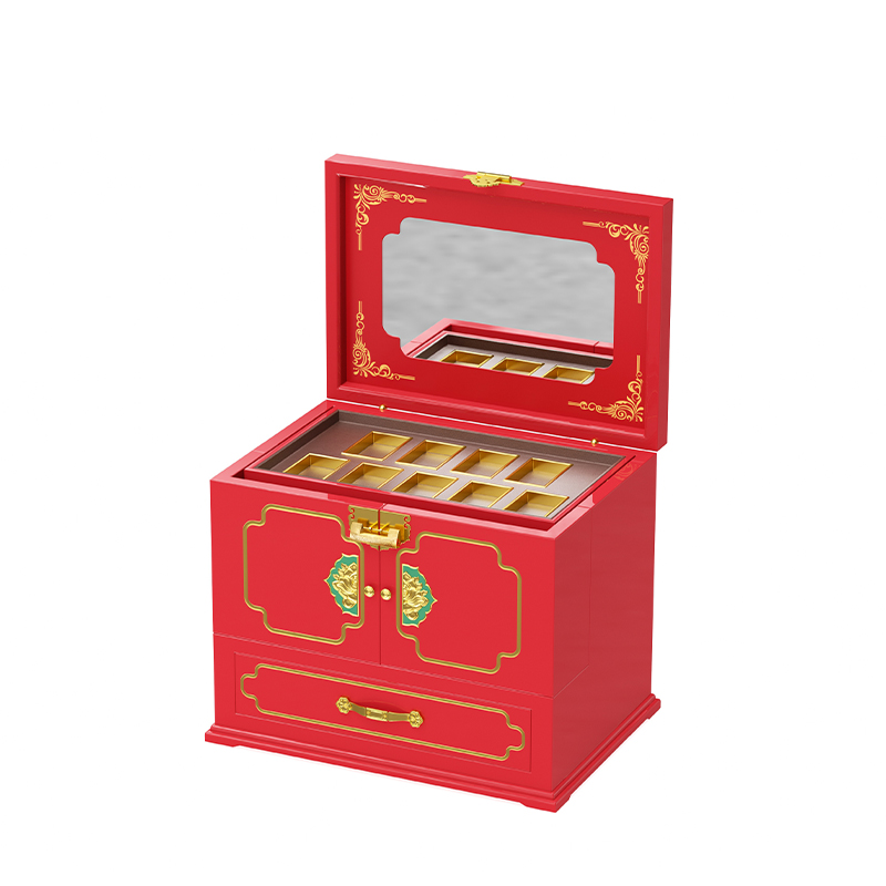 This large jewelry box set offers the ultimate solution for extensive collections. With multiple compartments, drawers, and dedicated sections, it provides ample space for everything from statement necklaces to delicate studs. Keep your entire jewelry wardrobe perfectly organized in one place.