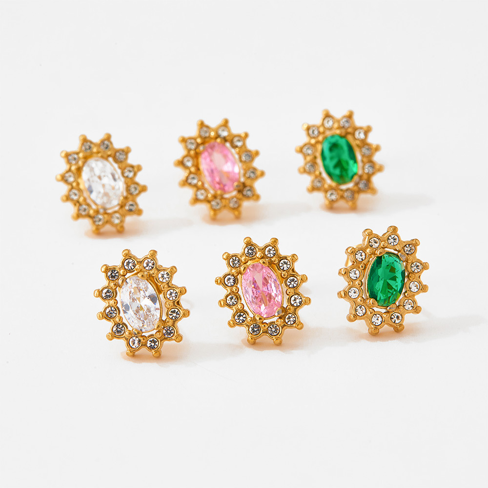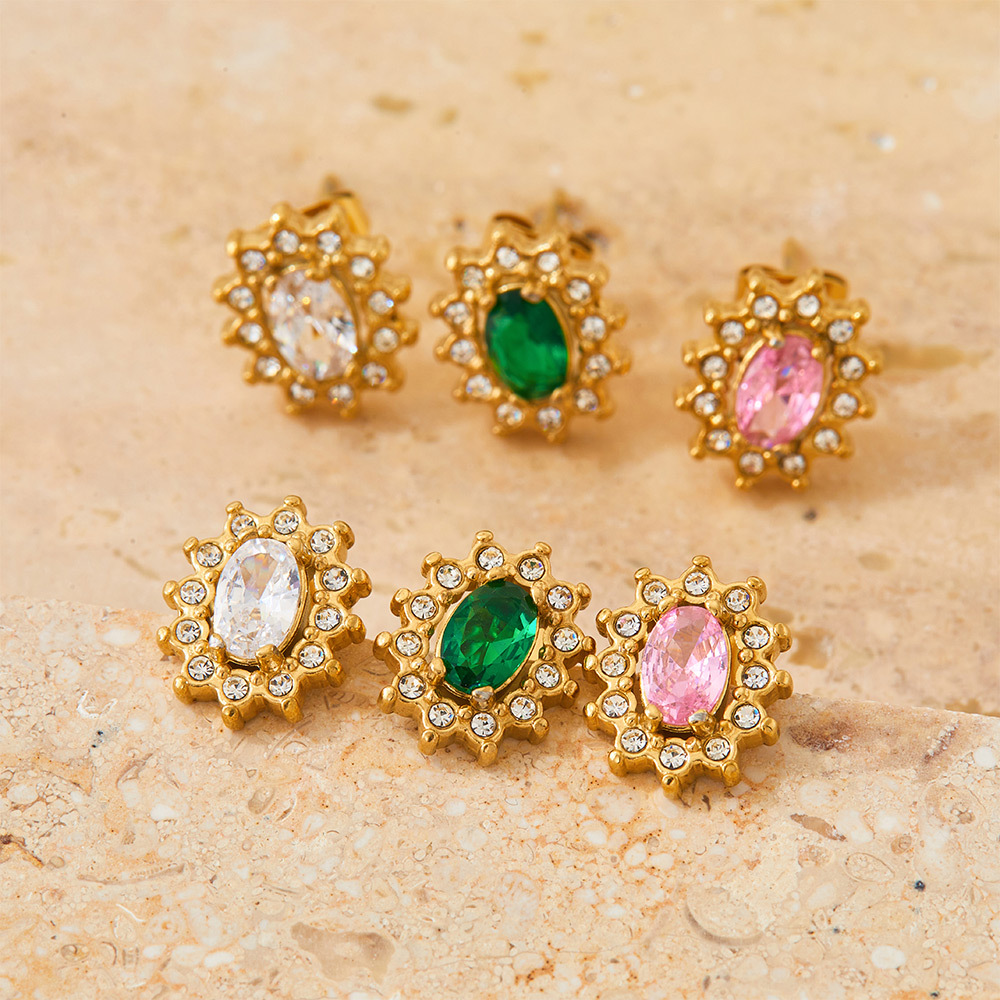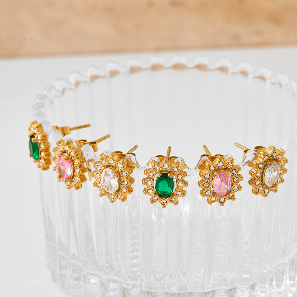 Latest Design Fashion Stud Earrings High Quality Stainless Steel Colorful Zircon 18K Gold Plated Sunflower Shaped Earrings For Women