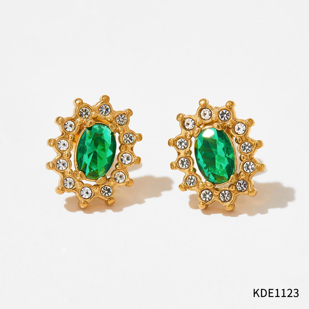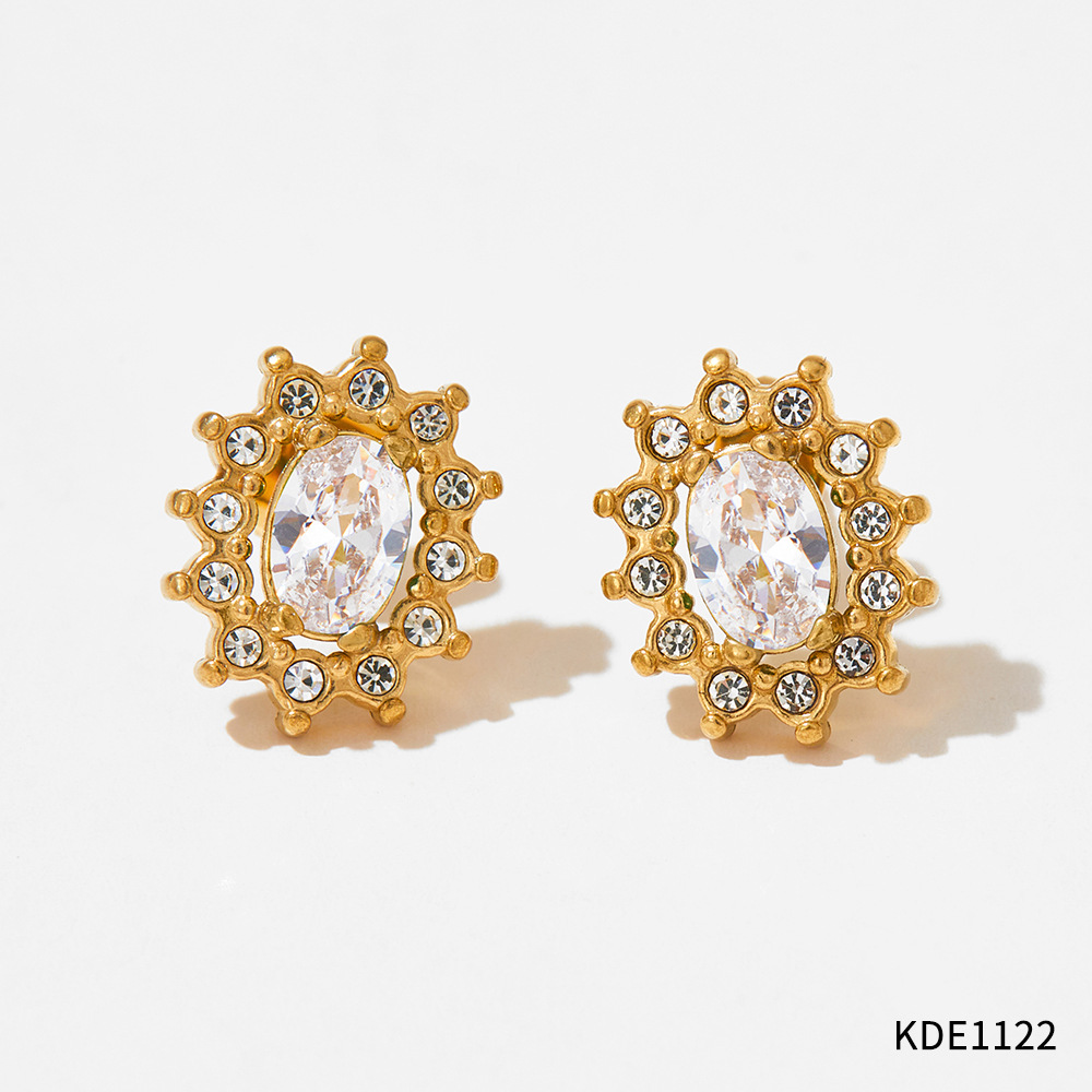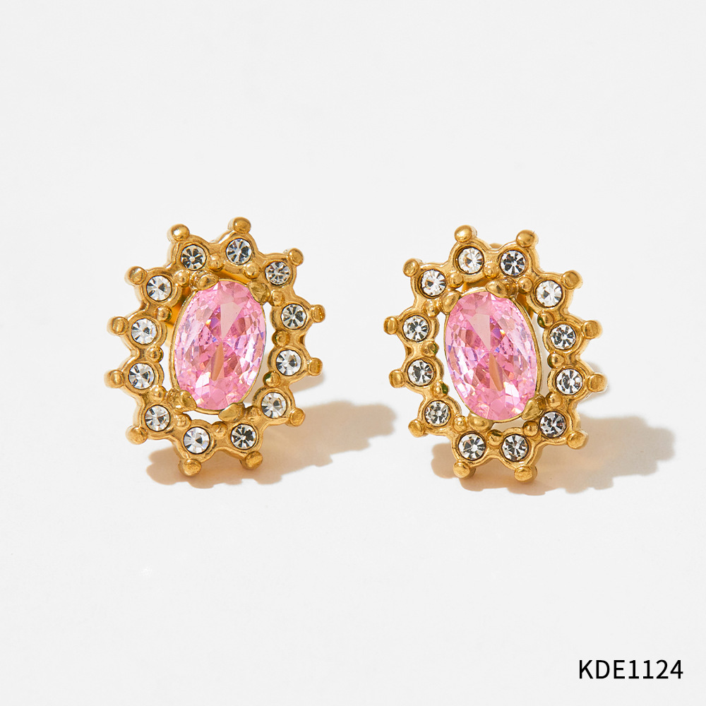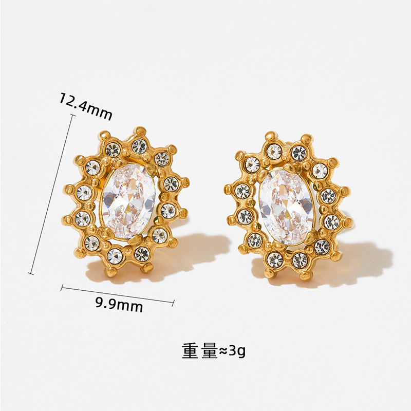 Latest Design Fashion Stud Earrings High Quality Stainless Steel Colorful Zircon 18K Gold Plated Sunflower Shaped Earrings For Women