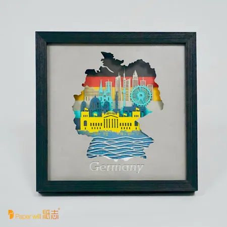 The creative design of paper-carved artworks continues, and this time we have chosen paper-carved decorative artworks as our new design direction. Through different layers of paper carving art expressions, we bring a brand-new feeling and surprise to space decoration. Whether viewed from a distance or up close, you can appreciate the amazing experience brought by the combination of design and paper carving art."Layered Shadows of the World" series of paper-carved decorative paintings takes national maps as the basic outline. Within the paintings, characteristic landscapes, national symbols, and architectural landmarks are integrated into the layered composition, reconstructing our memory of each country’s territorial impression through layered paper carving. Currently, versions for Germany, France, Russia, South Korea, Australia, and other countries are available.If you have any theme customization needs for paper-carved artworks, please feel free to contact us at any time.