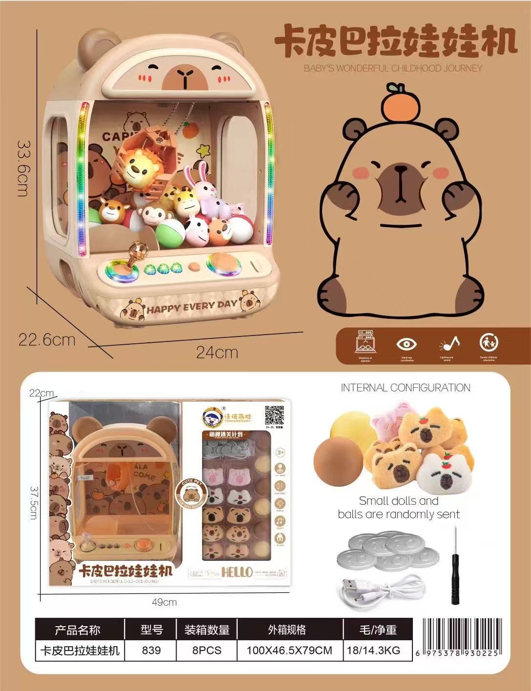 Toy Doll Mini Catch Machine House Candy Catcher Grabber Claw Arcade Crane Game Automatic Vending Kit USB Music Light Kids Gift