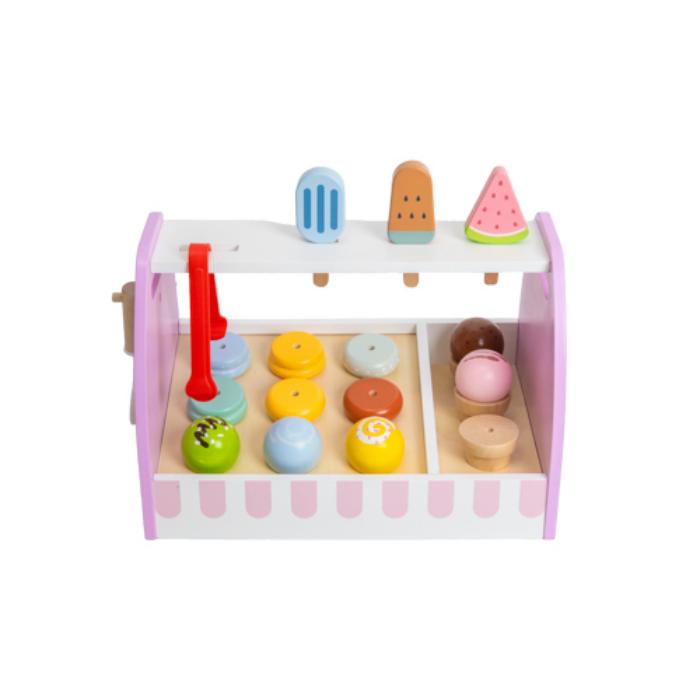 [Built-In Storage & Display Shelf]Features a top shelf for showcasing popsicles and a divided lower compartment for organizing all ice cream pieces—keeps toys tidy and teaches kids storage habits.