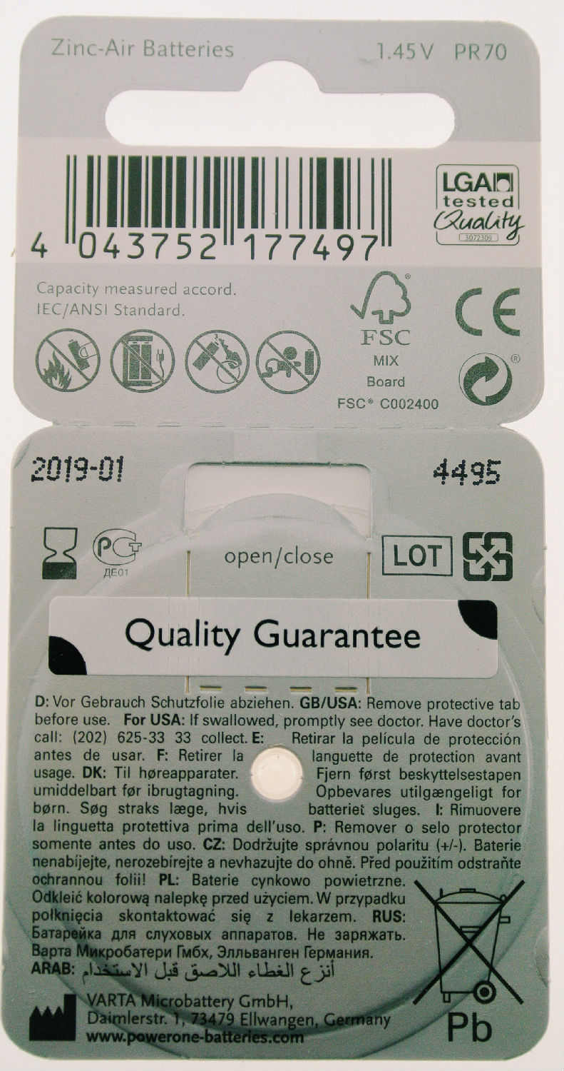 German Made Power One Hearing Aid Battery