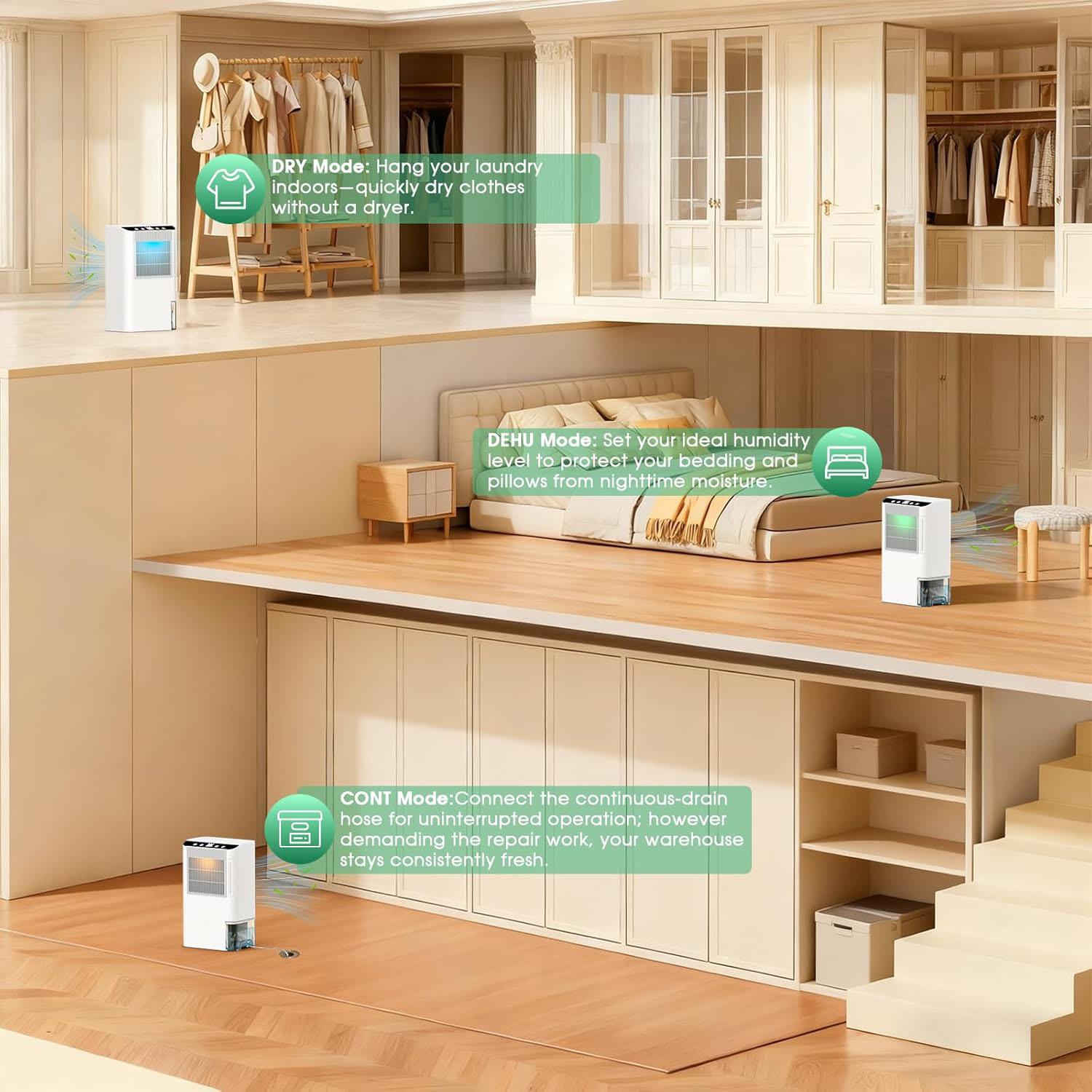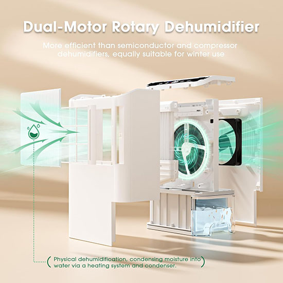 • Low noise and vibration-free operation; physical dehumidification without refrigerant, making it more environmentally friendly.