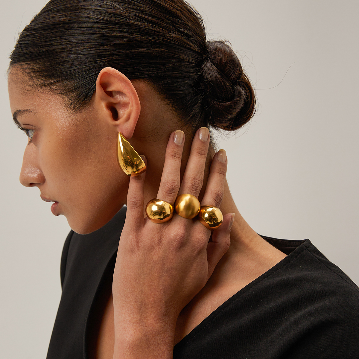 Stainless Steel High Polish Chunky Tear Waterdrop Earring Round Ball Punk Rings