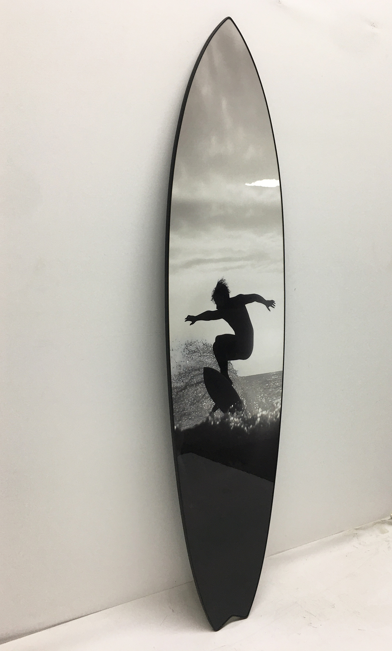 High-gloss lacquer embellished Surfboard Wall Art - Surfer Ride The Wave