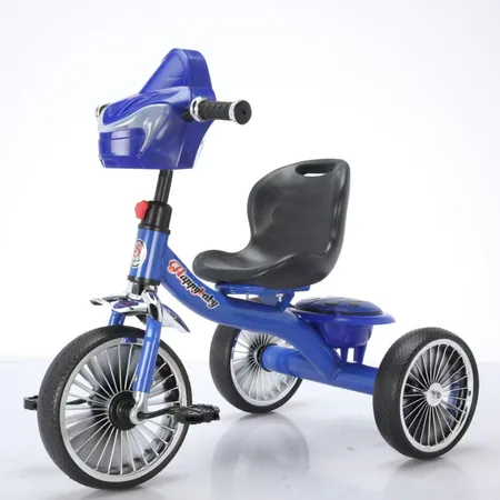 0.9mm thickened steel frame similar moto model, 0.8mm steel fork, safe and environmentally friendly handlebars, beautiful plastic wheel with EVA tire , more soft enlarged seats, one click installation, children tricycle with light and music, enlarged rear basket, matte baking varnish, anti roll setting