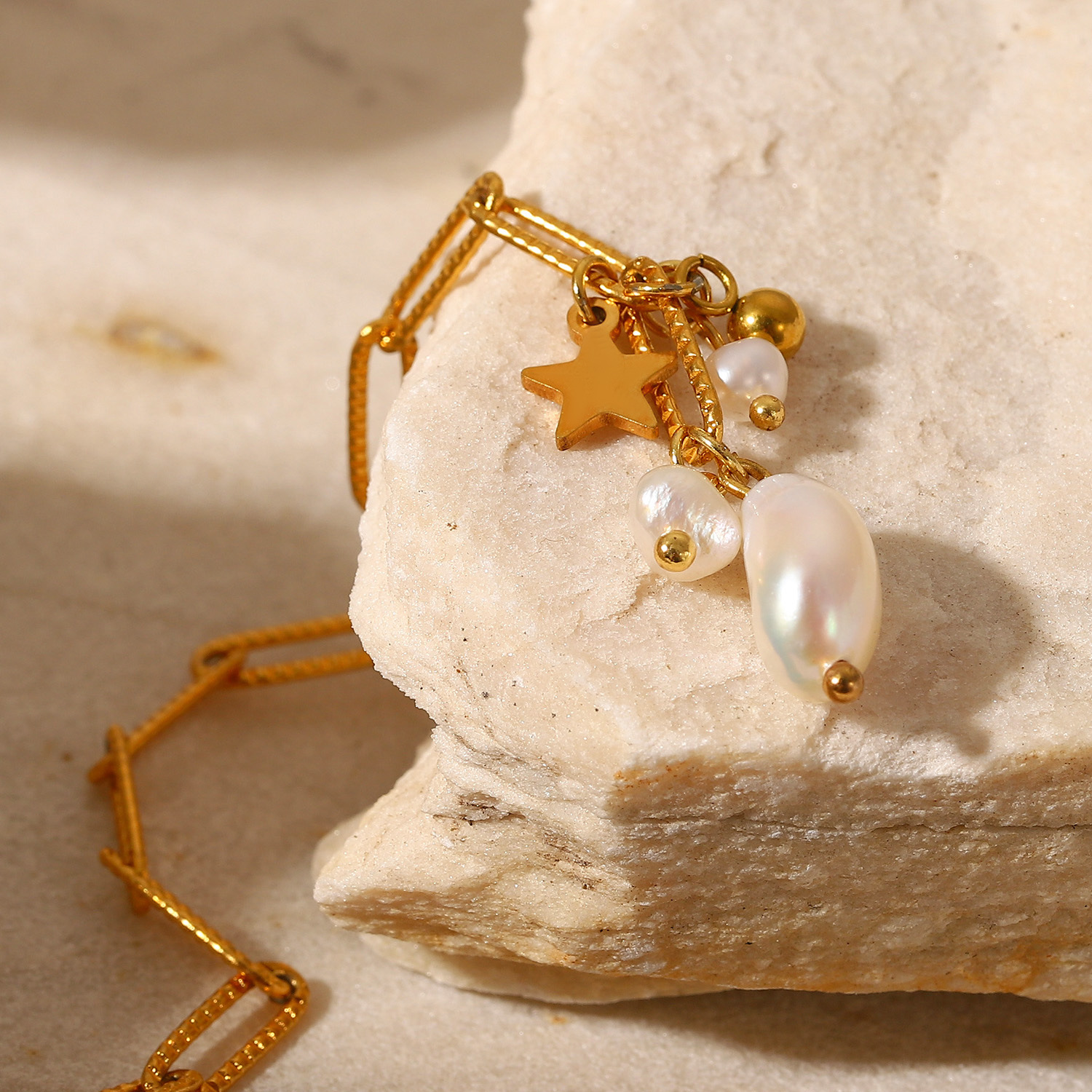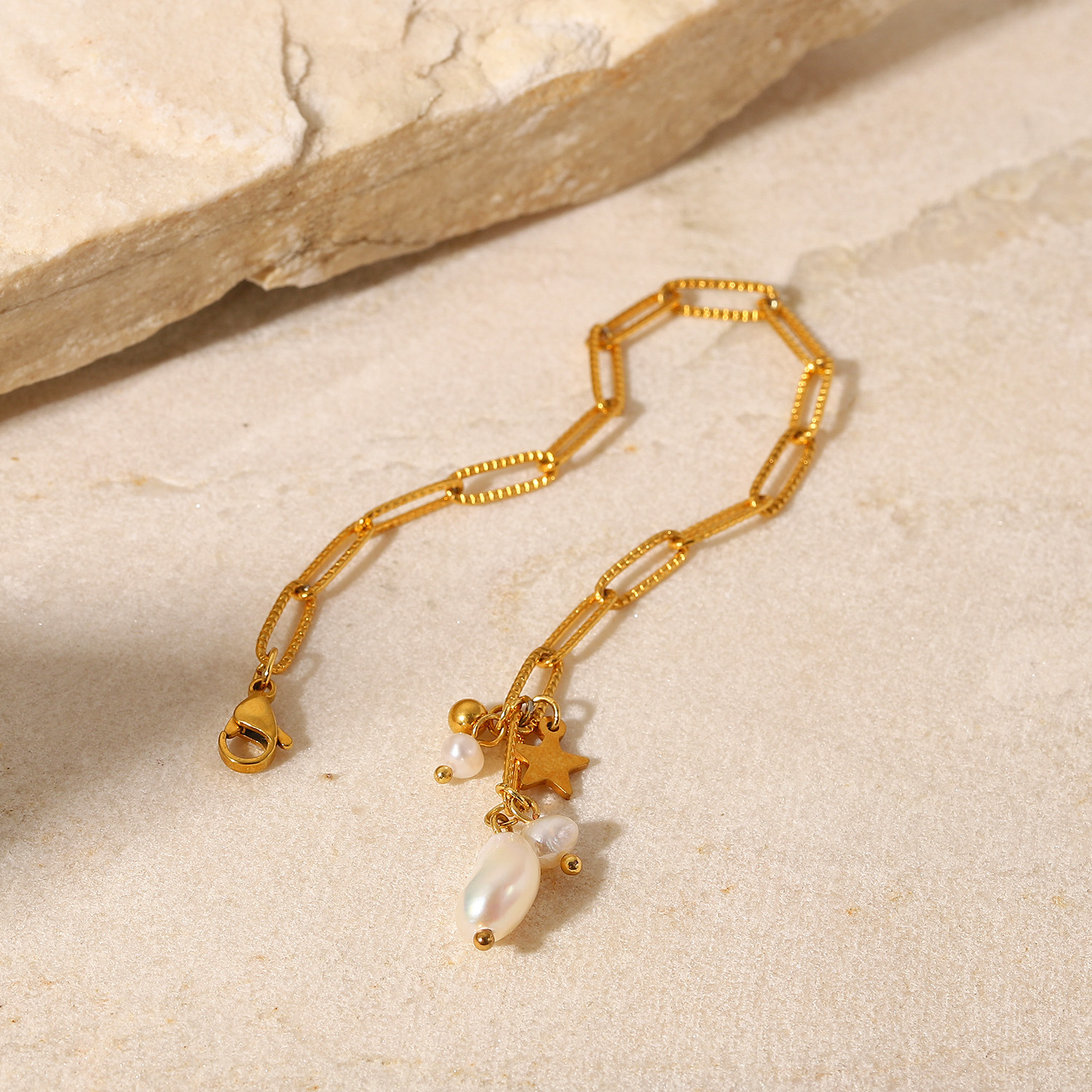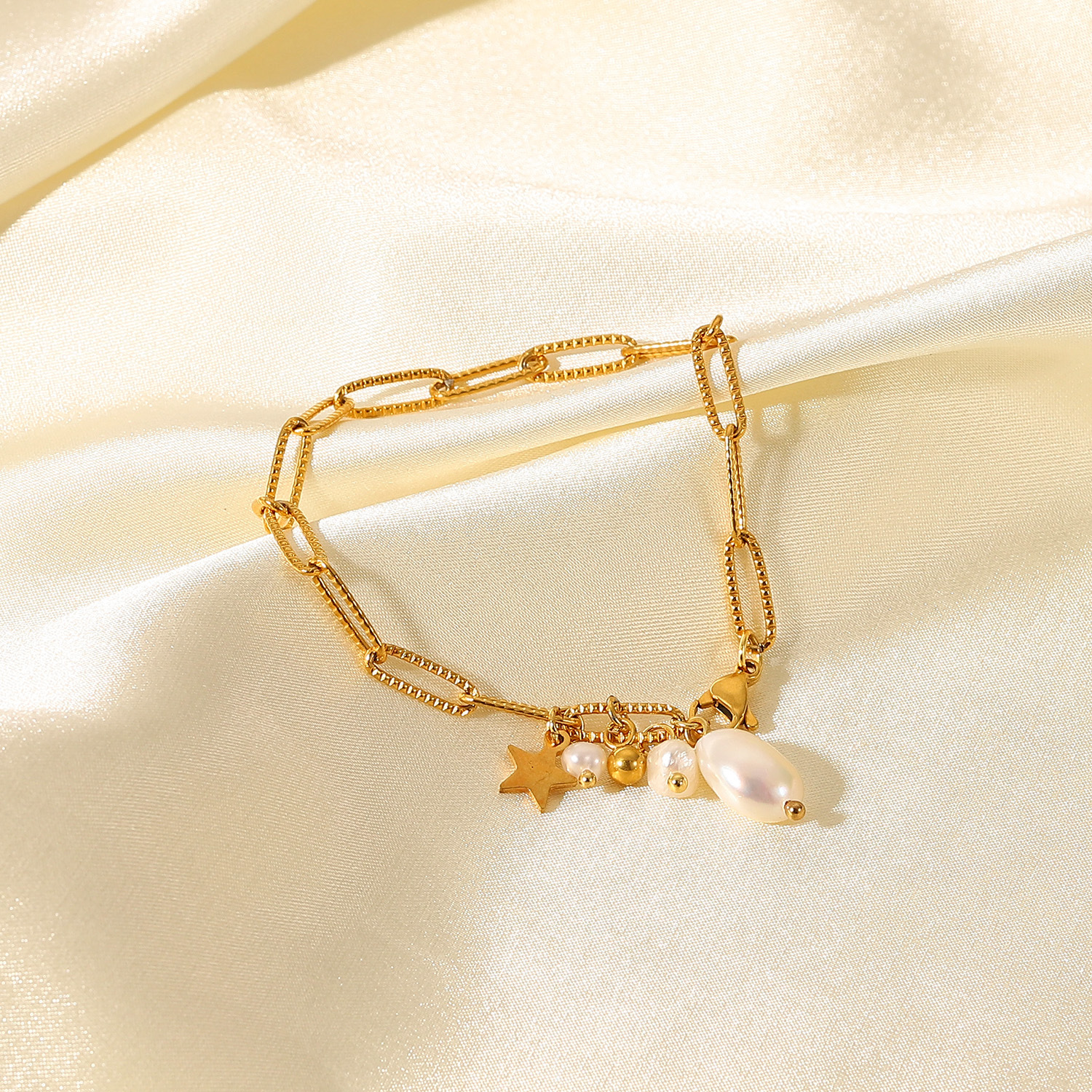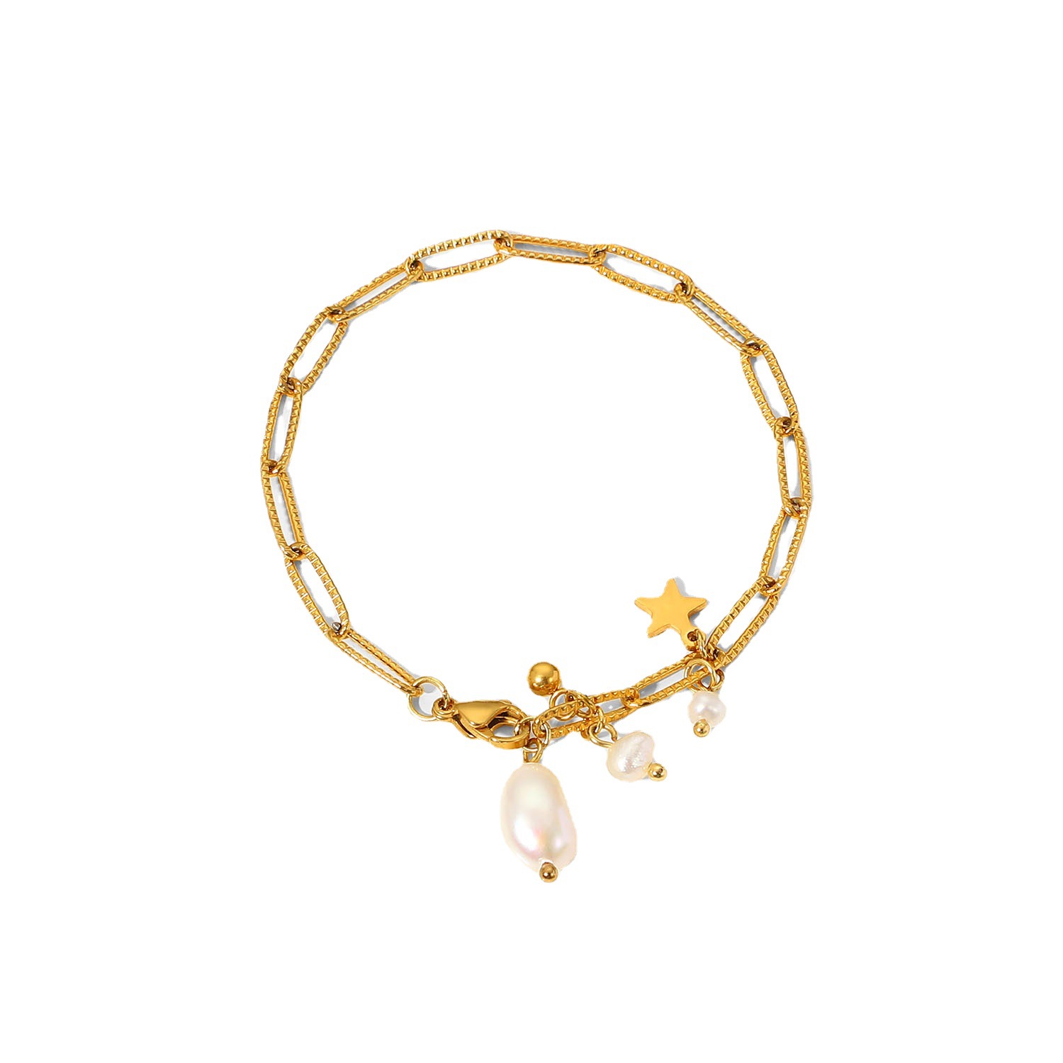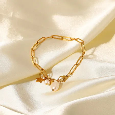 chain bracelet with color fresh water pearl bracelet 18k gold plated stainless steel charm bracelet for women