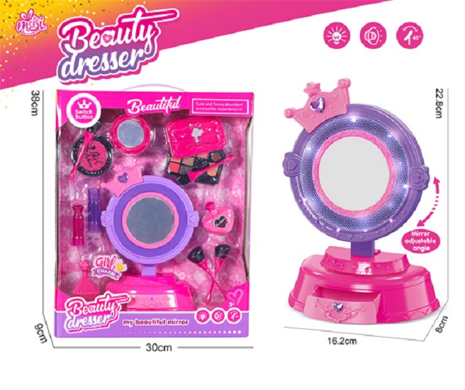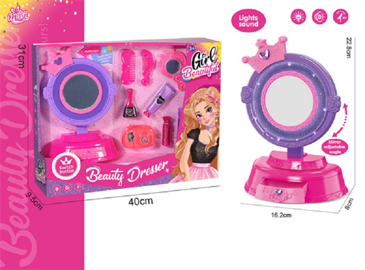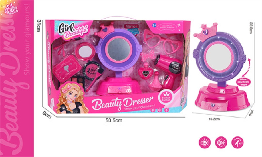 Dressing play set including many different accessories,including mirror, comb,glasses,lipstick and so on,ref the pictures.