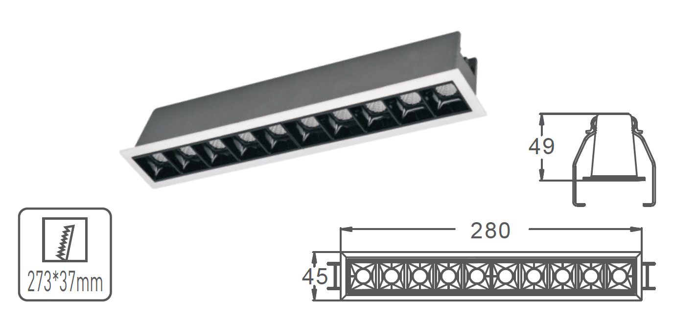 recessed Mini Square Linear Light 20W 10 heads linear led lighting residential